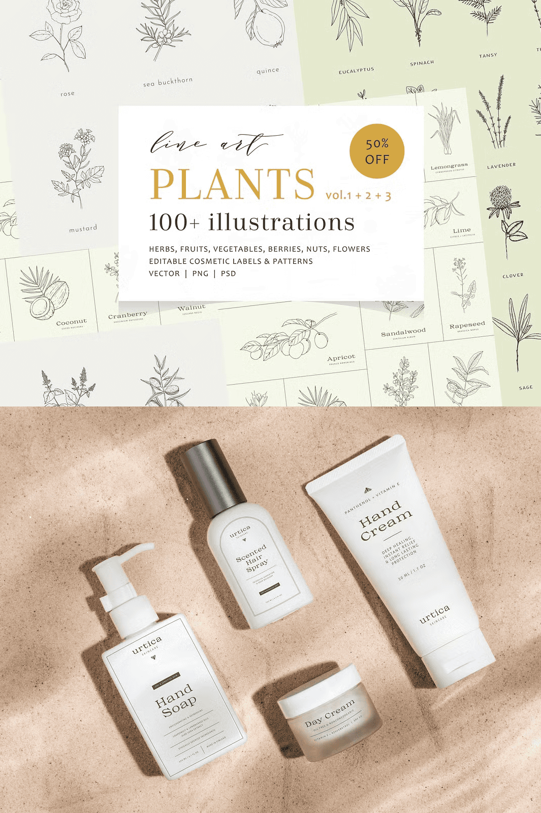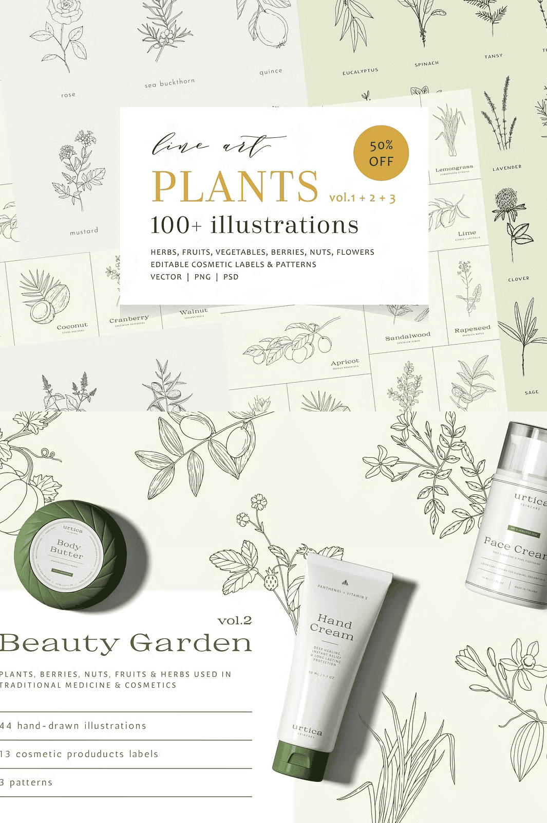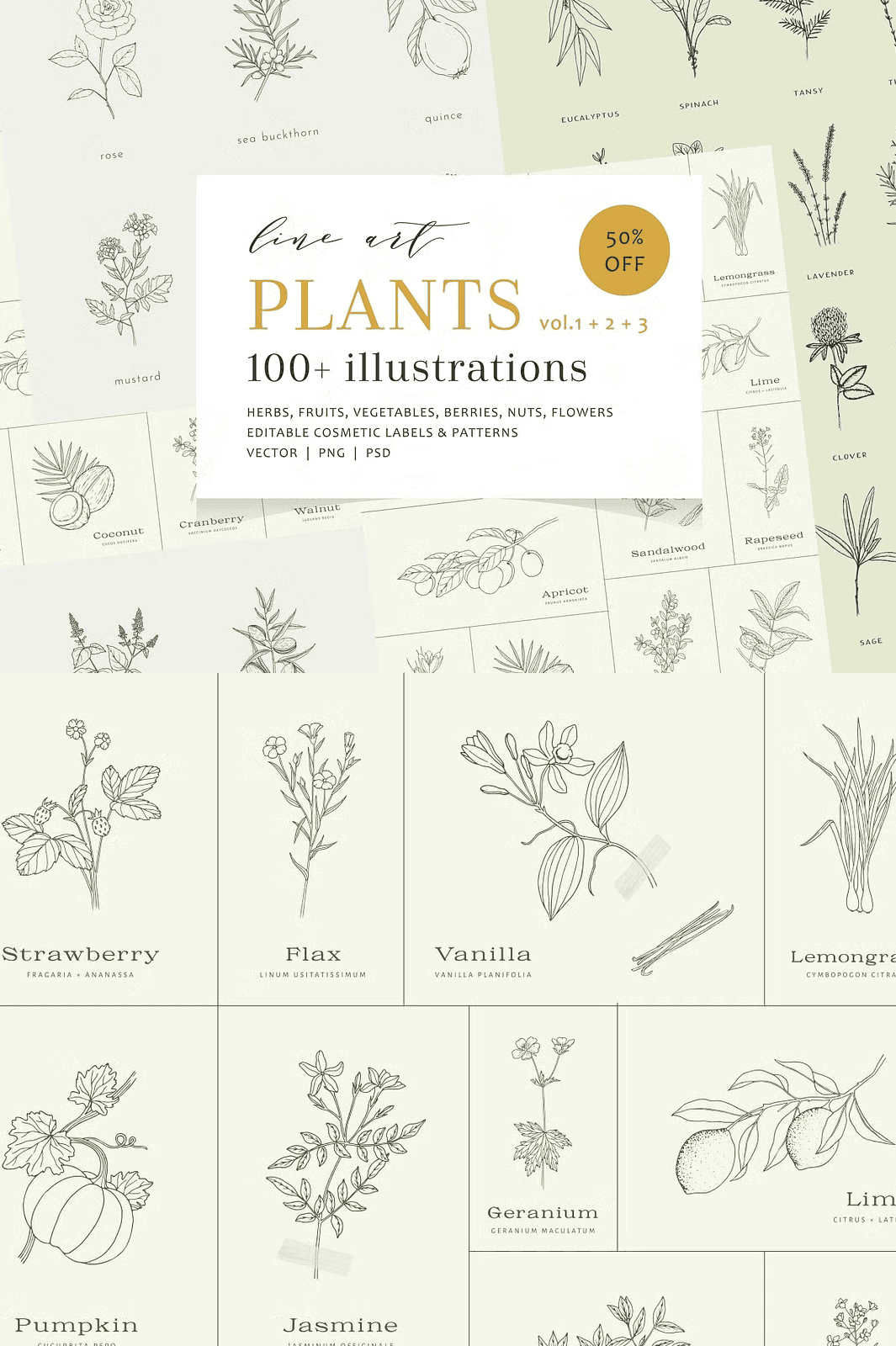 Unlock a rich world of natural elegance with the **100 Plants Bundle Vol 1, 2, 3**—a meticulously curated collection of 104 unique, hand-drawn botanical illustrations. Each plant is not only artistically detailed but also clearly labeled for accuracy and ease of use. This comprehensive resource is ideal for designers, illustrators, product developers, and content creators working in the fields of culinary arts, herbal medicine, skincare, cosmetics, and botanical branding.