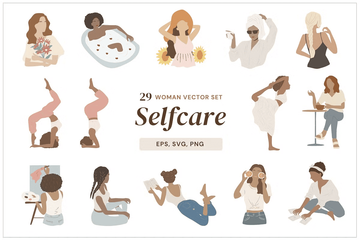 Each illustration captures a meaningful self-care moment, designed to inspire and connect: