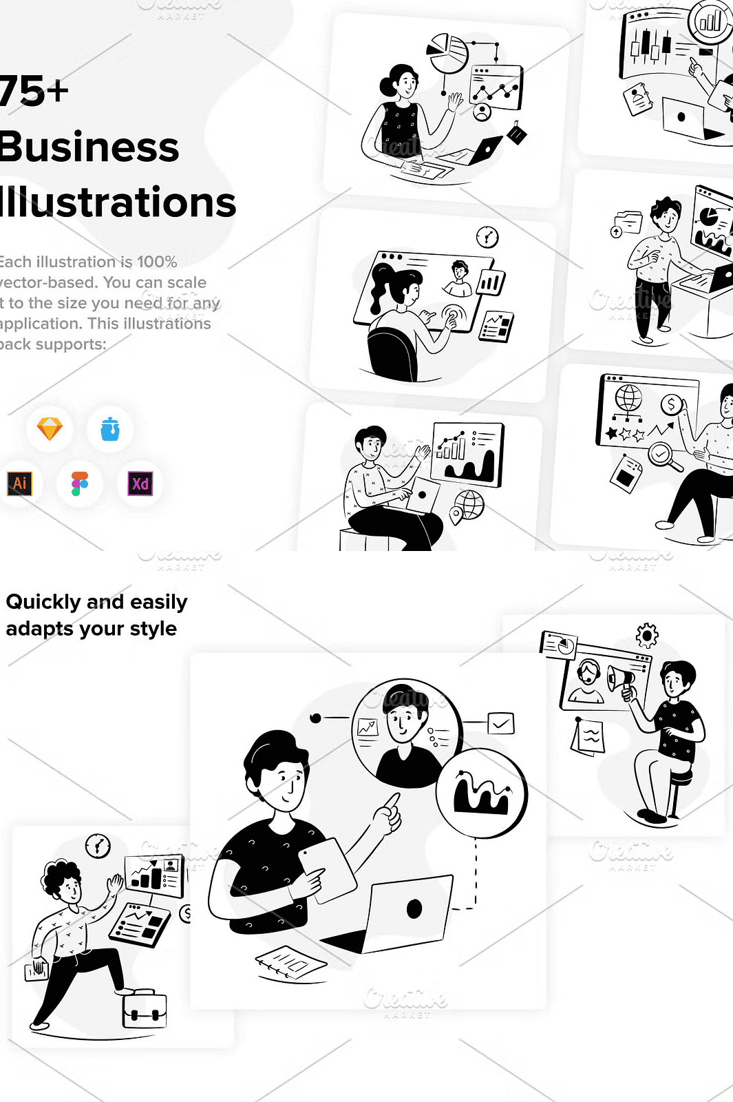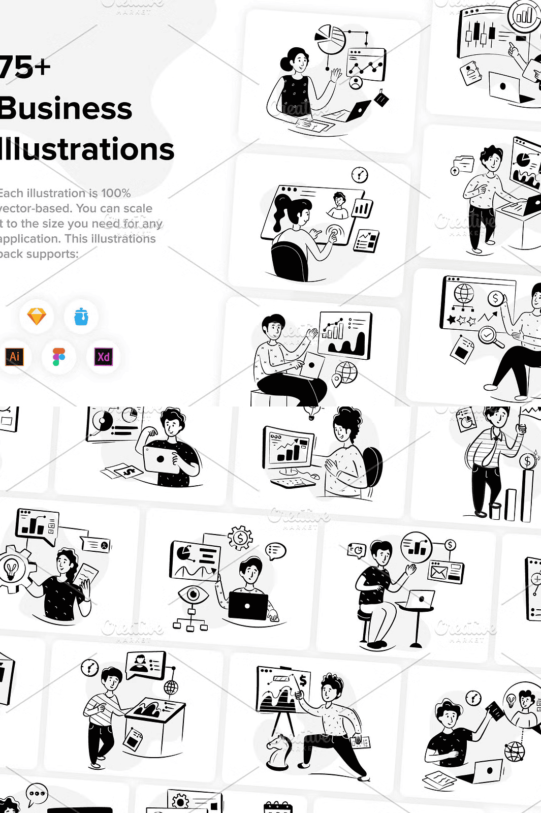 Elevate your digital and print projects with a powerful, modern set of **79 hand-drawn business illustrations** crafted for today’s creative demands. This isn’t just a collection—it’s a complete visual language for business innovation, strategy, and growth. Whether you’re designing a SaaS landing page, building a pitch deck, or creating social media content, these illustrations deliver instant clarity, professional polish, and visual impact.