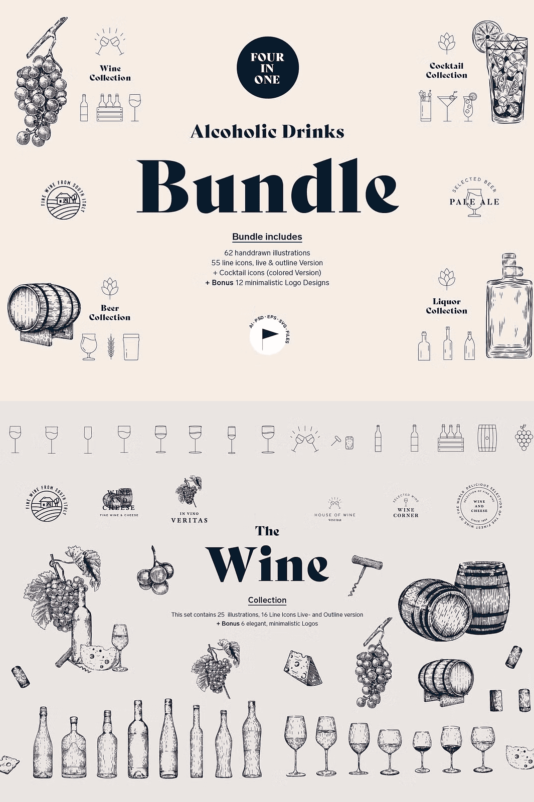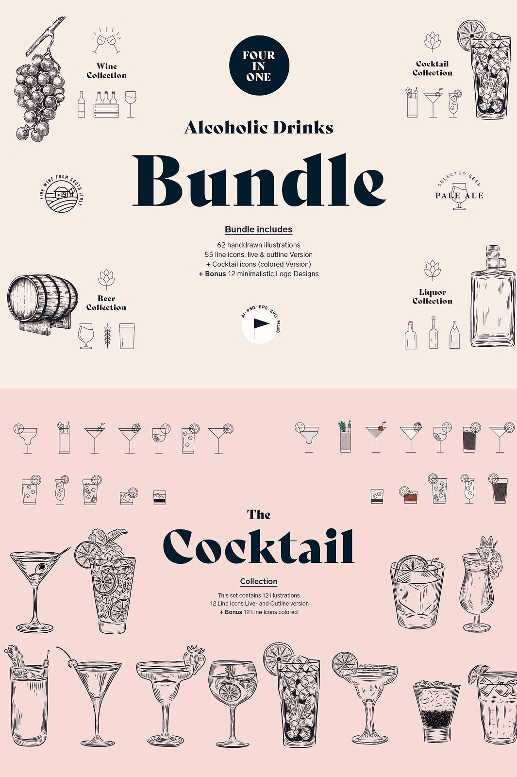 Click below to unlock the full **Alcoholic Drinks Illustration Bundle** and start designing with bold, artistic flair today.