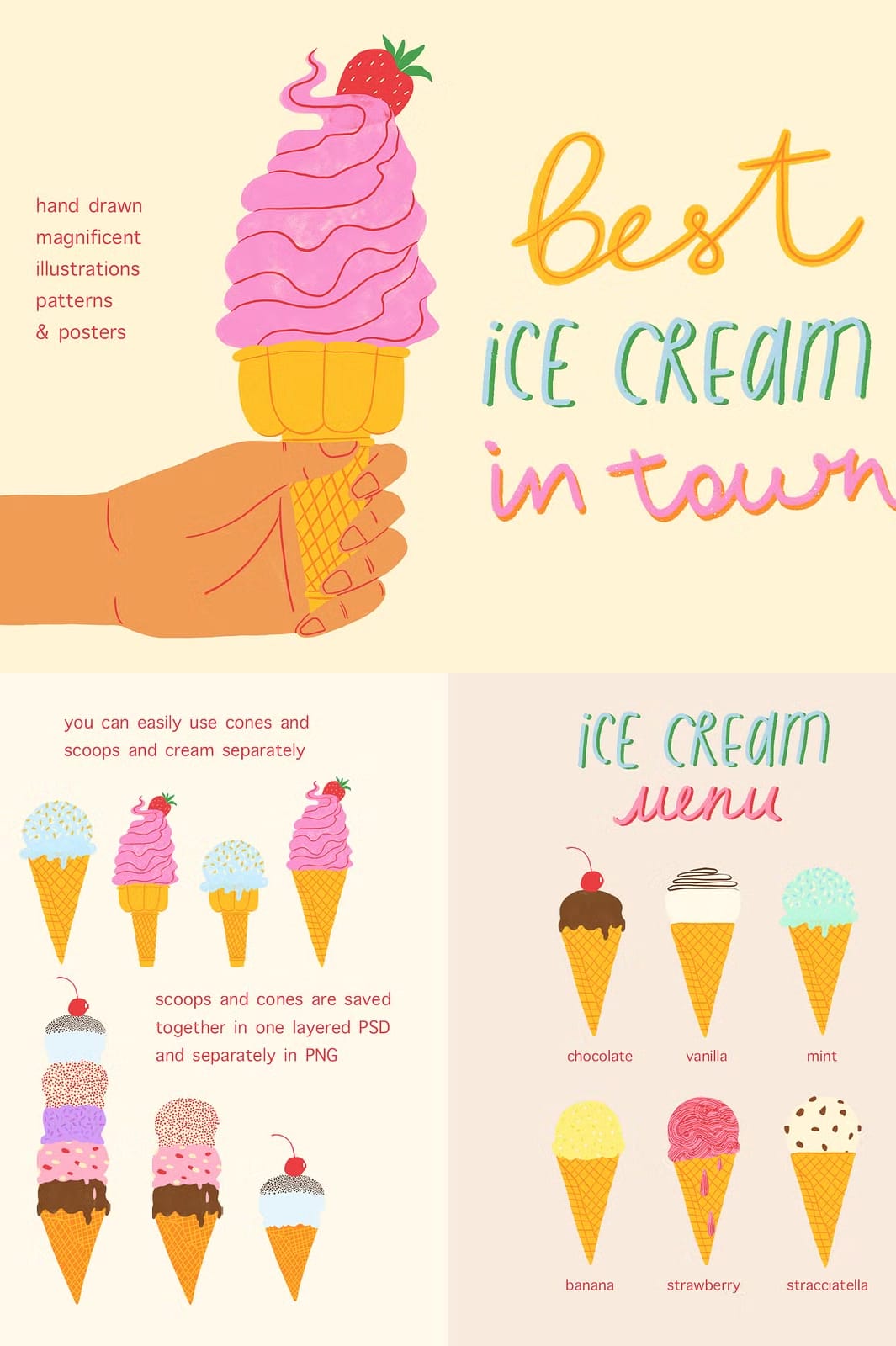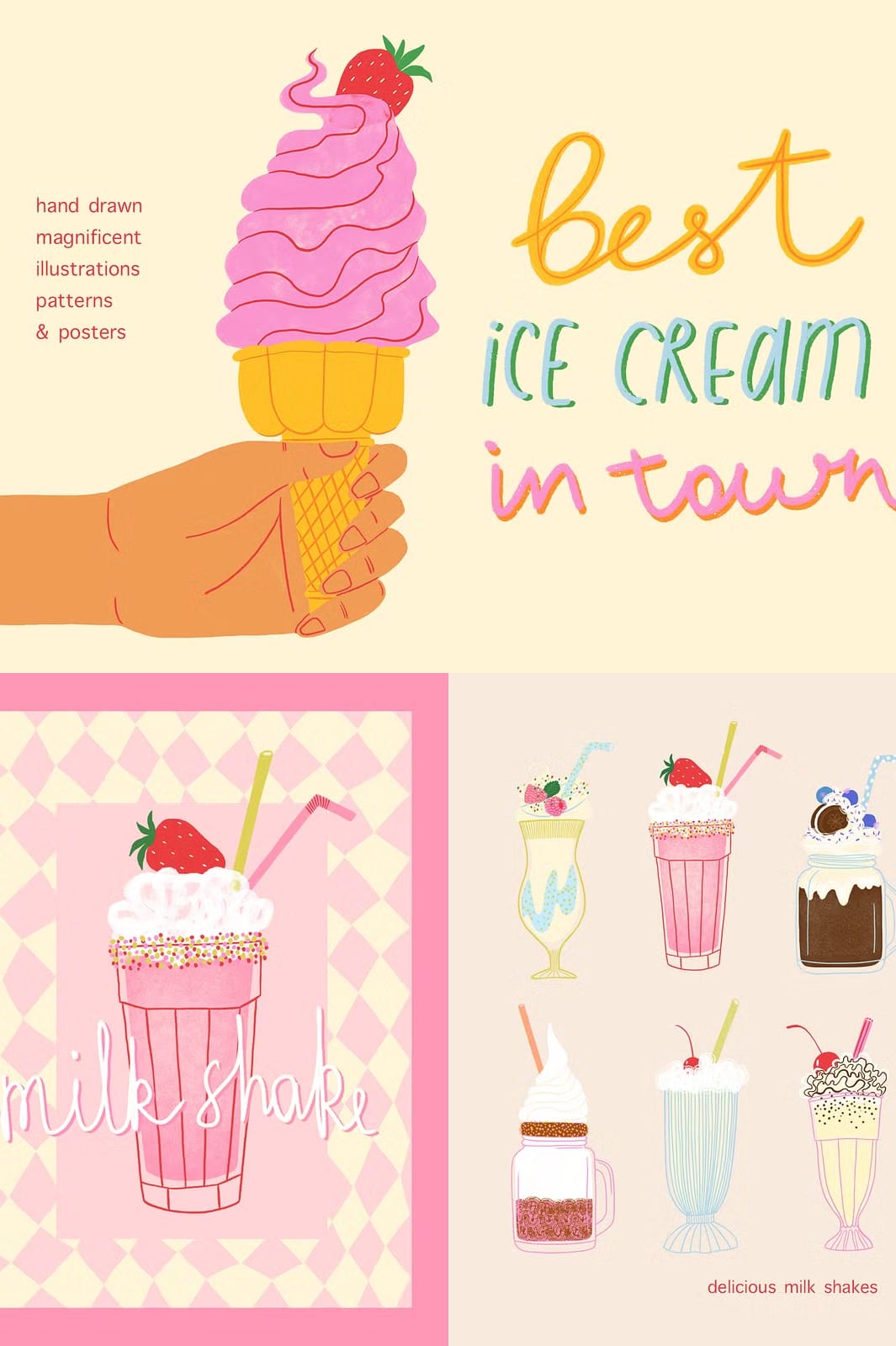 39 Premium Illustrations – Ice Creams, Milkshakes, and More