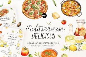 Mediterranean Cuisine Watercolor Set