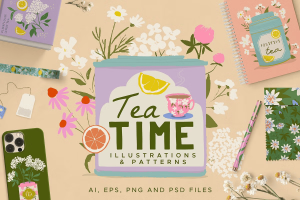 Tea Time Illustrations and Patterns