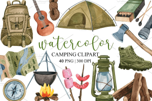 Watercolor Camping Clipart, PNG