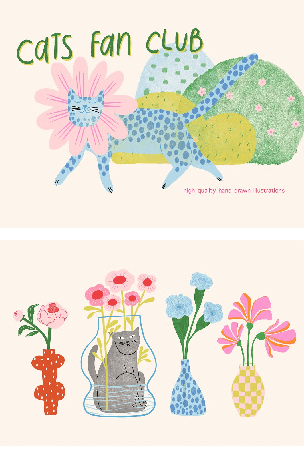 Let your passion for cats shine with the **Cats Fan Club Collection**—a vibrant, hand-crafted digital art bundle that celebrates the charm, playfulness, and personality of our feline friends. Every illustration is meticulously drawn by hand, capturing the unique spirit of each cat in dynamic poses, sweet expressions, and cozy moments. Whether you’re a designer, artist, or simply a cat enthusiast, this pack delivers pure creative joy.