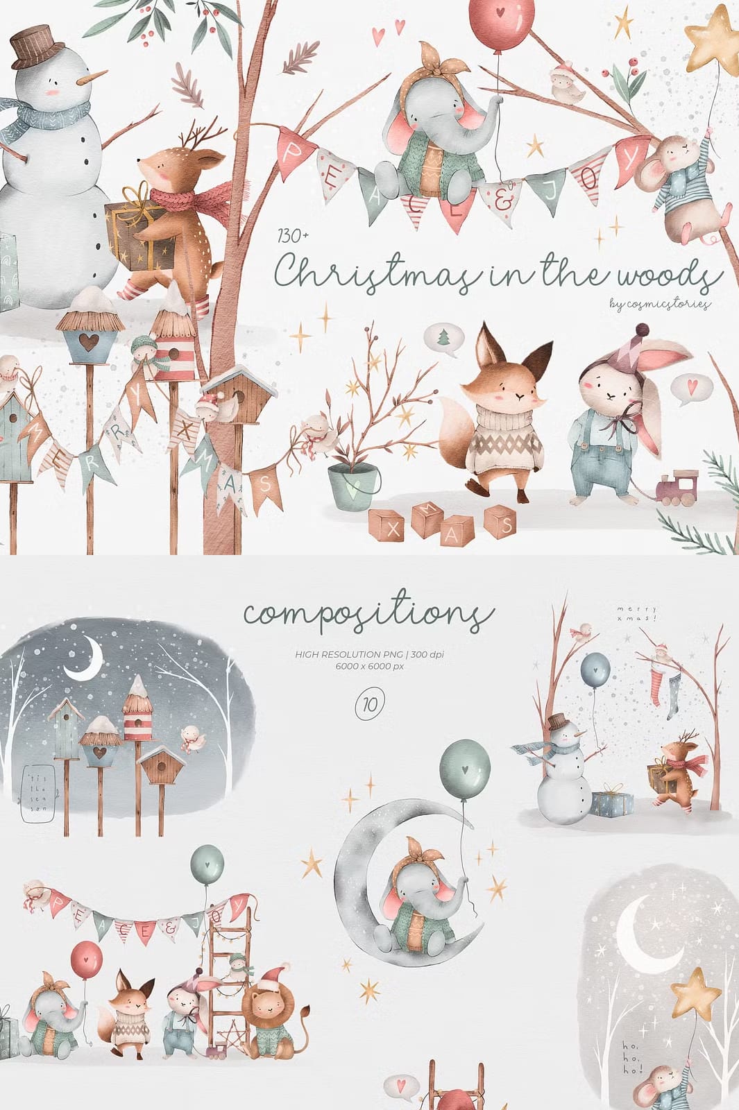 Make this holiday season truly memorable with the Christmas Illustrations for Kids Collection, a captivating set of over 130 high-resolution illustrations designed to bring joy and warmth to your winter projects. This delightful collection features an array of adorable animal characters—from playful rabbits and gentle reindeers to charming little birds—alongside festive holiday decorations that will enchant both children and adults alike. Each illustration is crafted with meticulous attention to detail, ensuring your designs radiate the true spirit of the season.