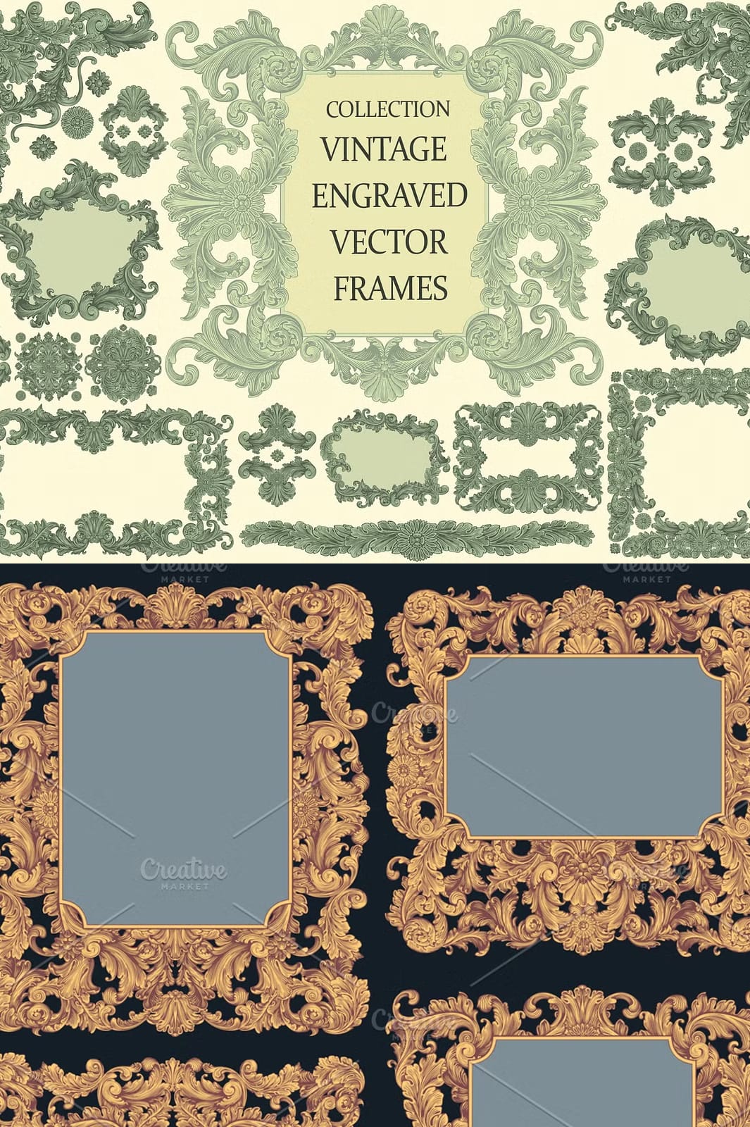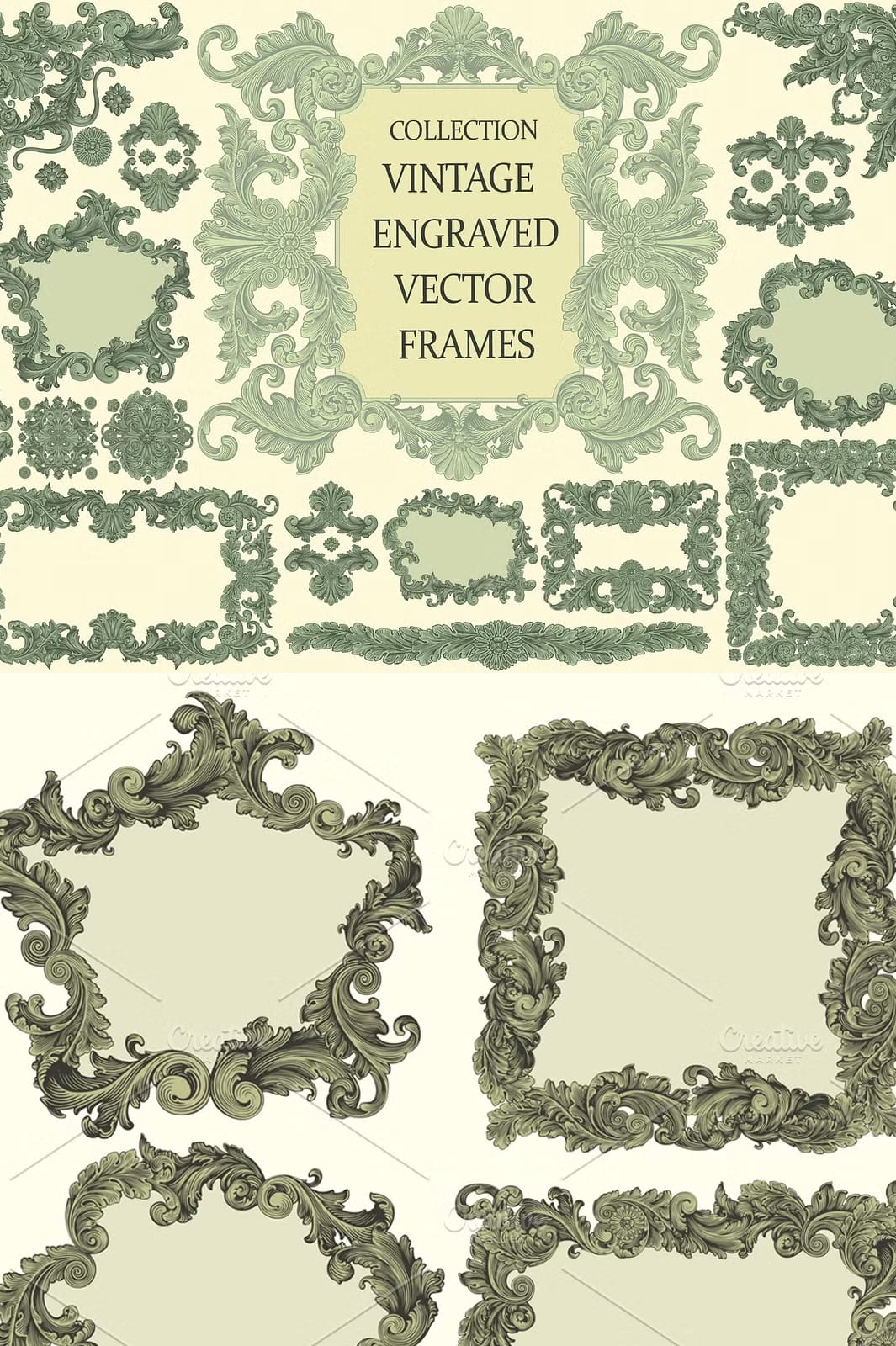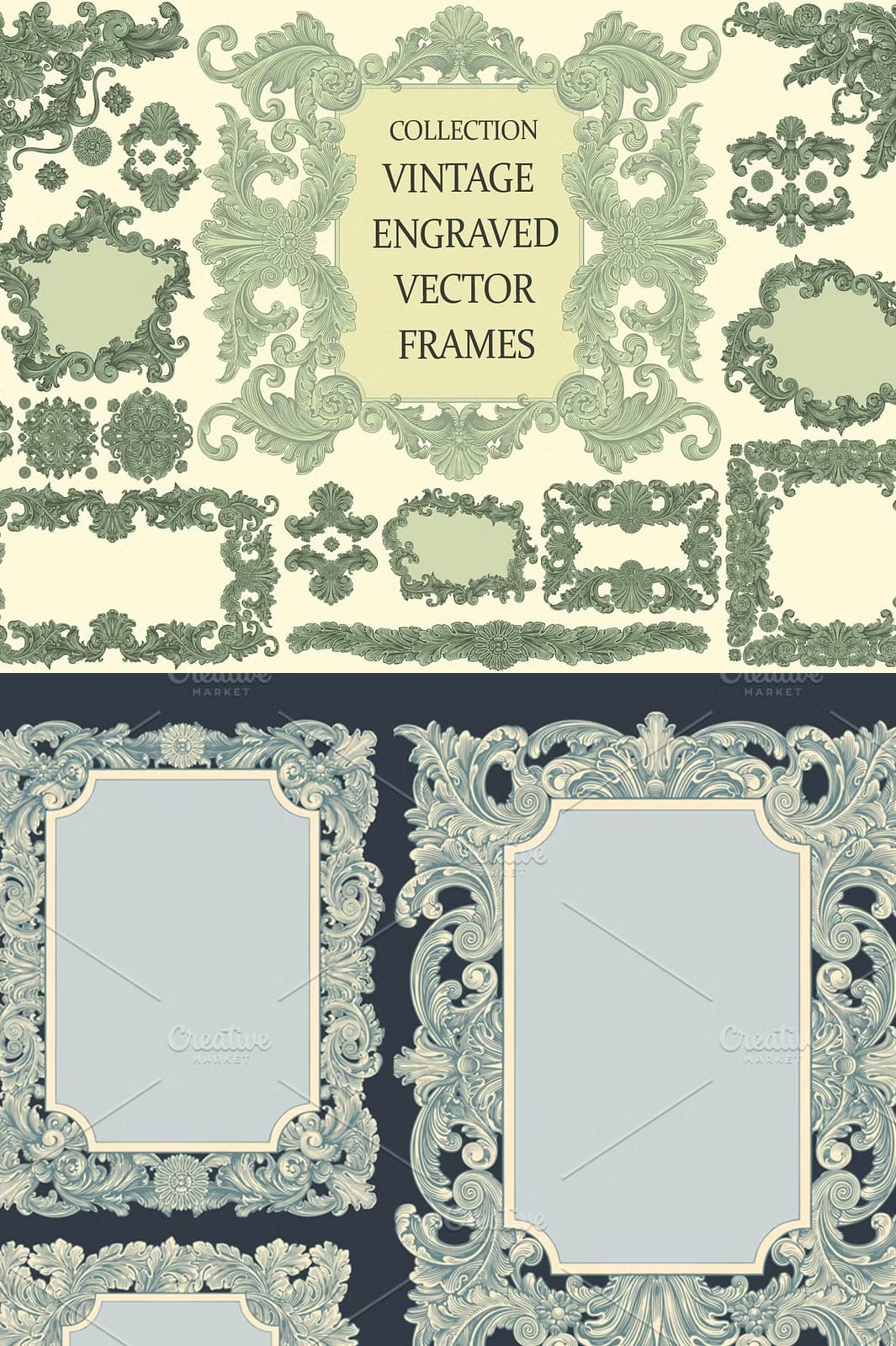 Whether you are a graphic designer working on commercial projects or a DIY enthusiast creating personalized items, this collection offers the adaptability to meet diverse needs. The frames and decorative elements are ideal for enhancing the visual appeal of printed materials, digital media, and fashion designs. Their vintage engraving style adds a layer of sophistication that elevates the perception of your brand or personal creations, making them memorable and impactful.