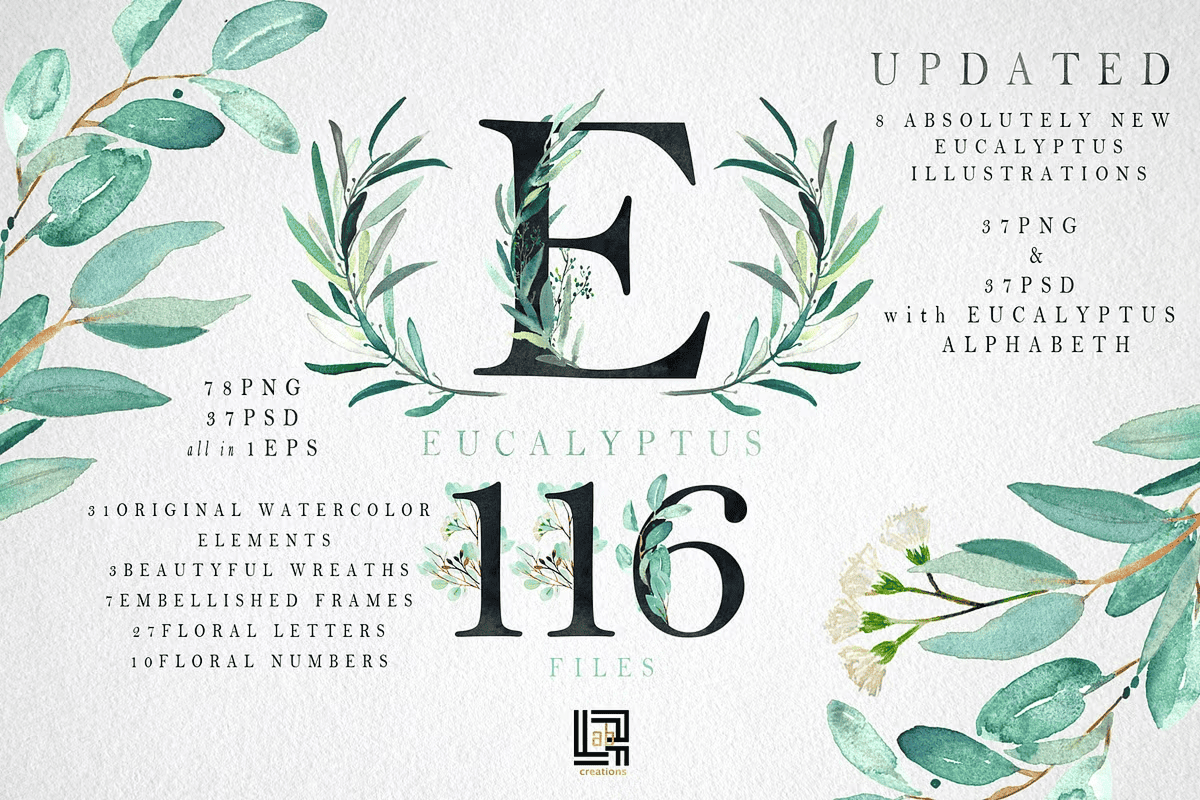 – Updated Eucalyptus Alphabet with 27 PNG and 27 PSD files, perfect for typography-based projects.