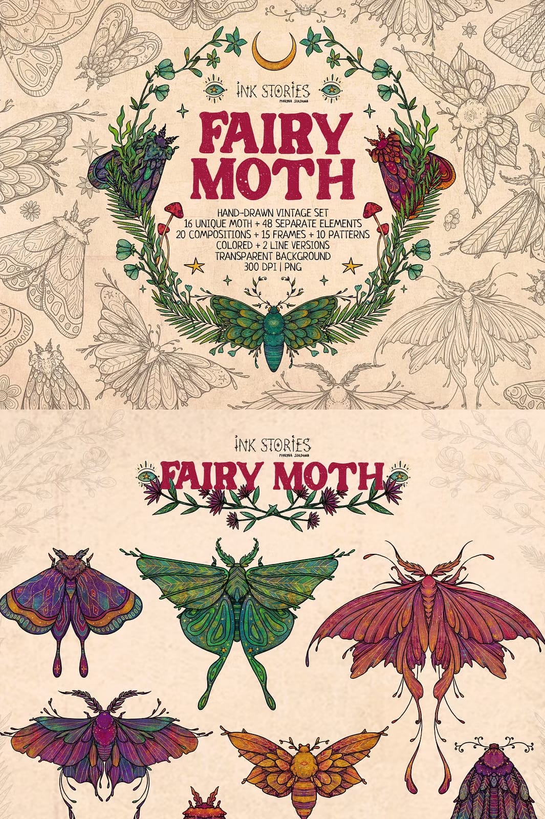 The Vintage Moth Illustration Collection includes a diverse assembly of high-quality elements that inspire unlimited creativity and adaptability: