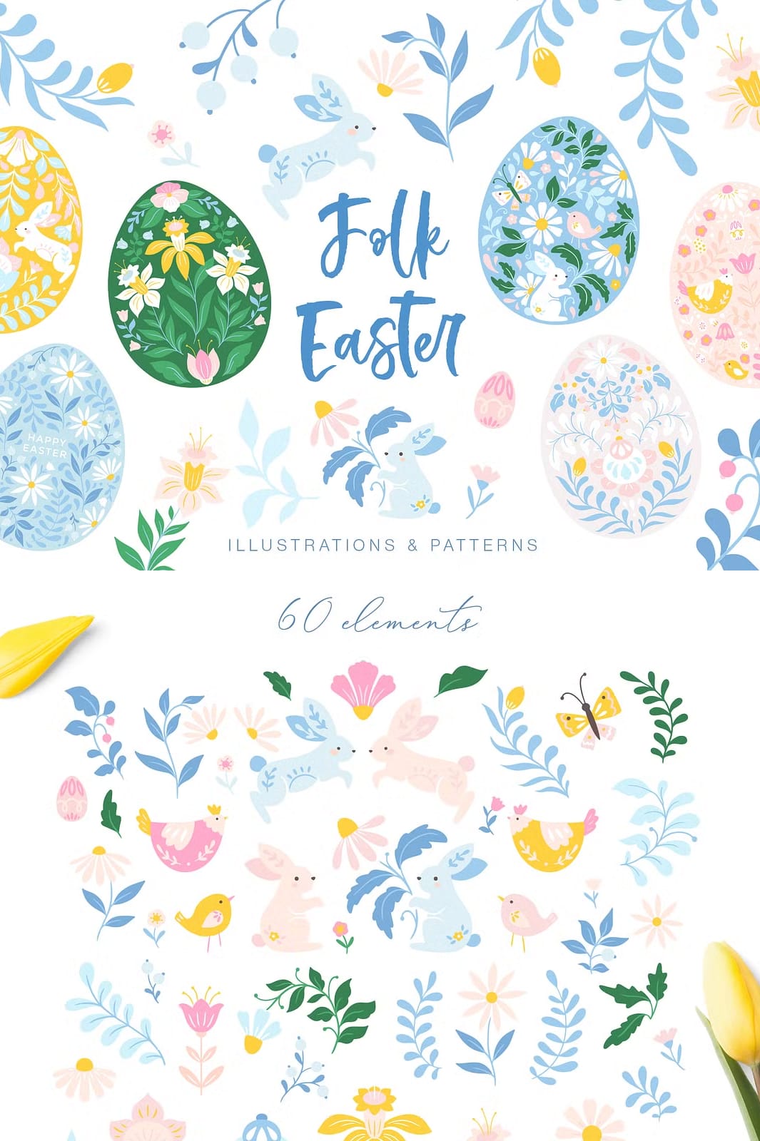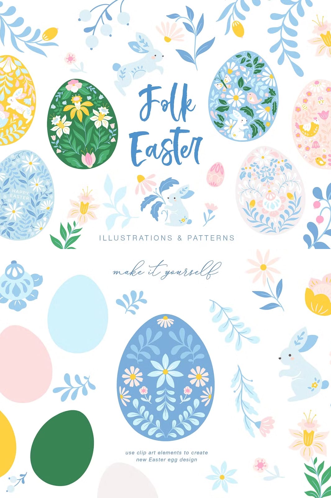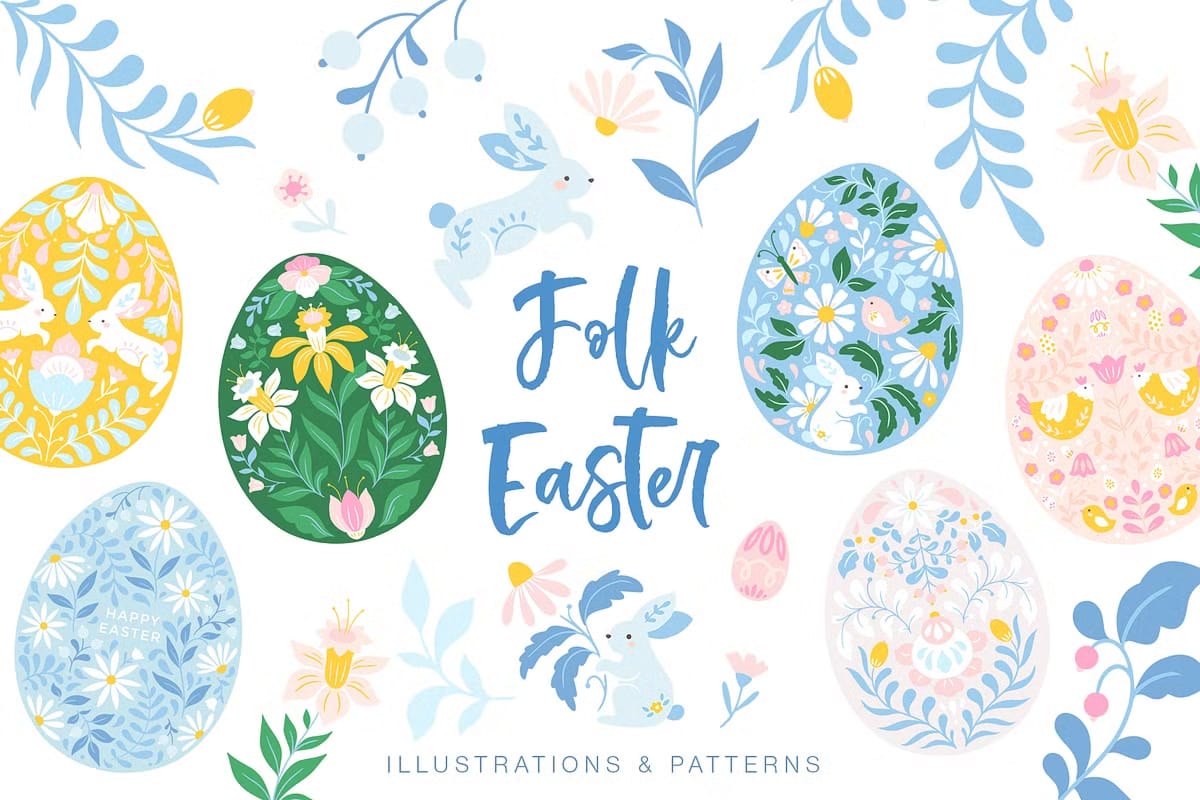 This comprehensive collection includes high-quality illustrations featuring traditional folk art motifs such as flowers, eggs, bunnies, and other symbols associated with springtime festivities. Each graphic is designed with attention to detail ensuring they stand out beautifully in any project you undertake.