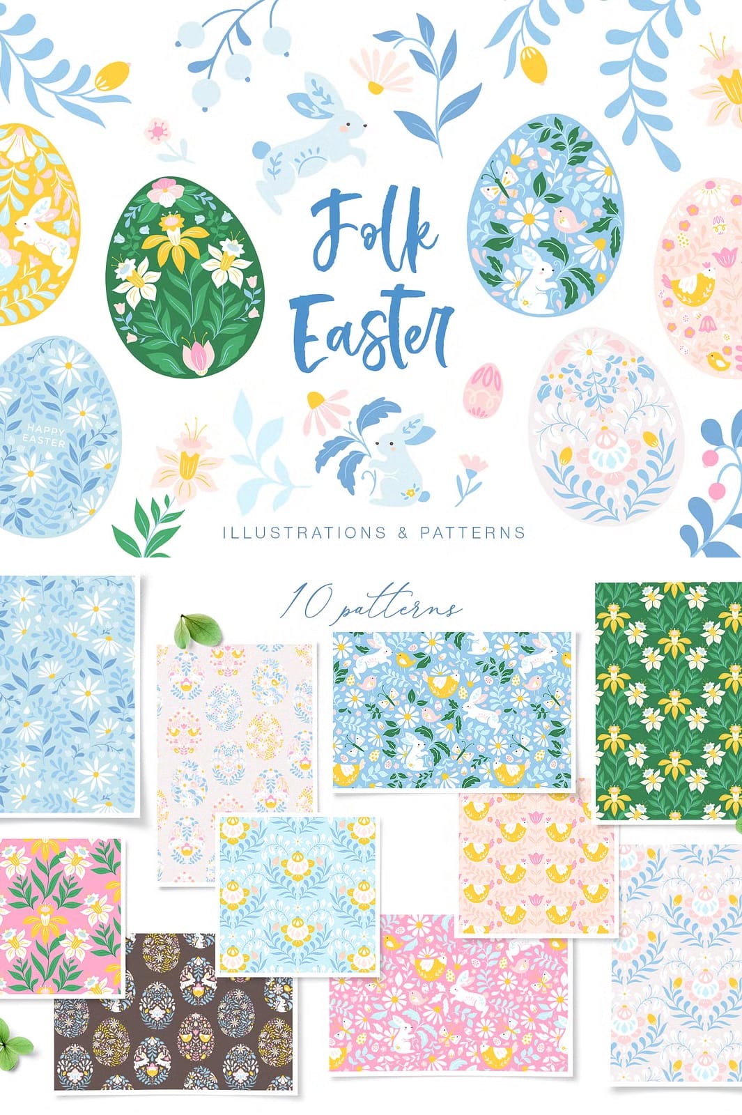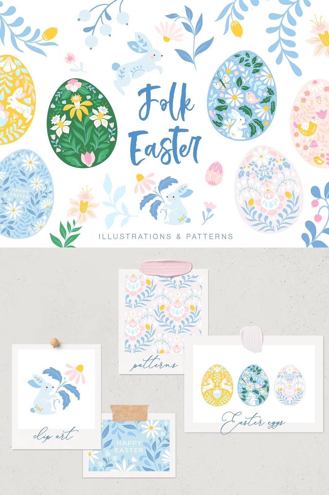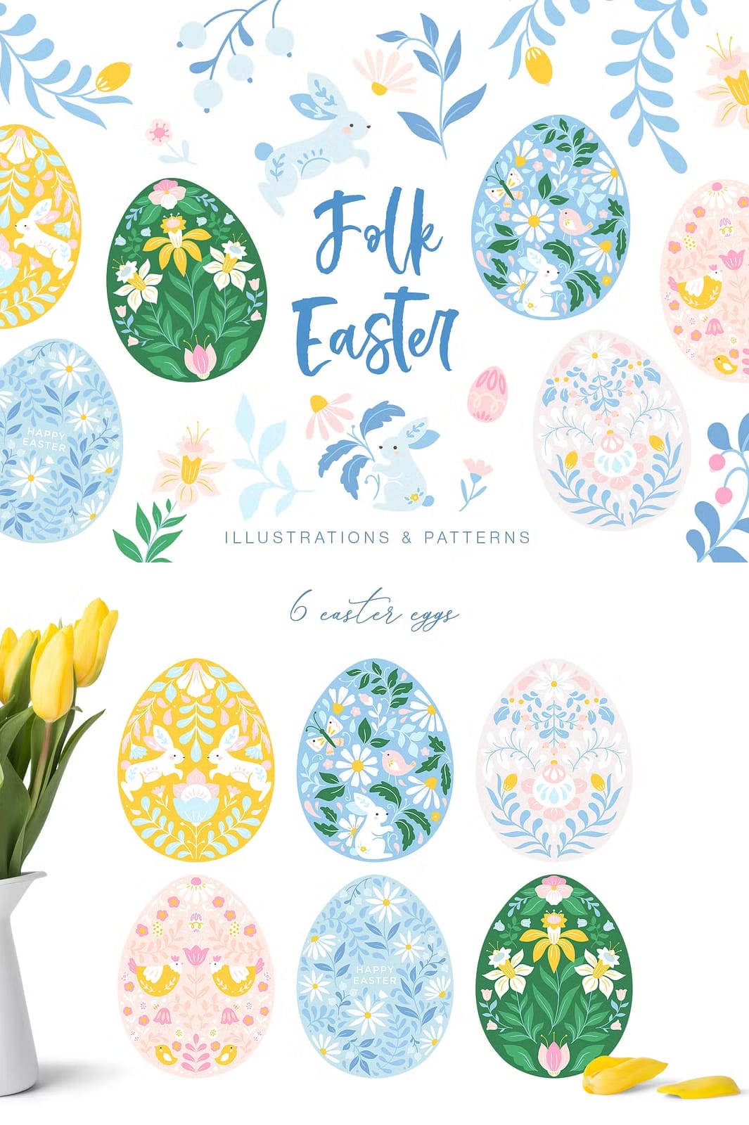This comprehensive collection includes high-quality illustrations featuring traditional folk art motifs such as flowers, eggs, bunnies, and other symbols associated with springtime festivities. Each graphic is designed with attention to detail ensuring they stand out beautifully in any project you undertake.