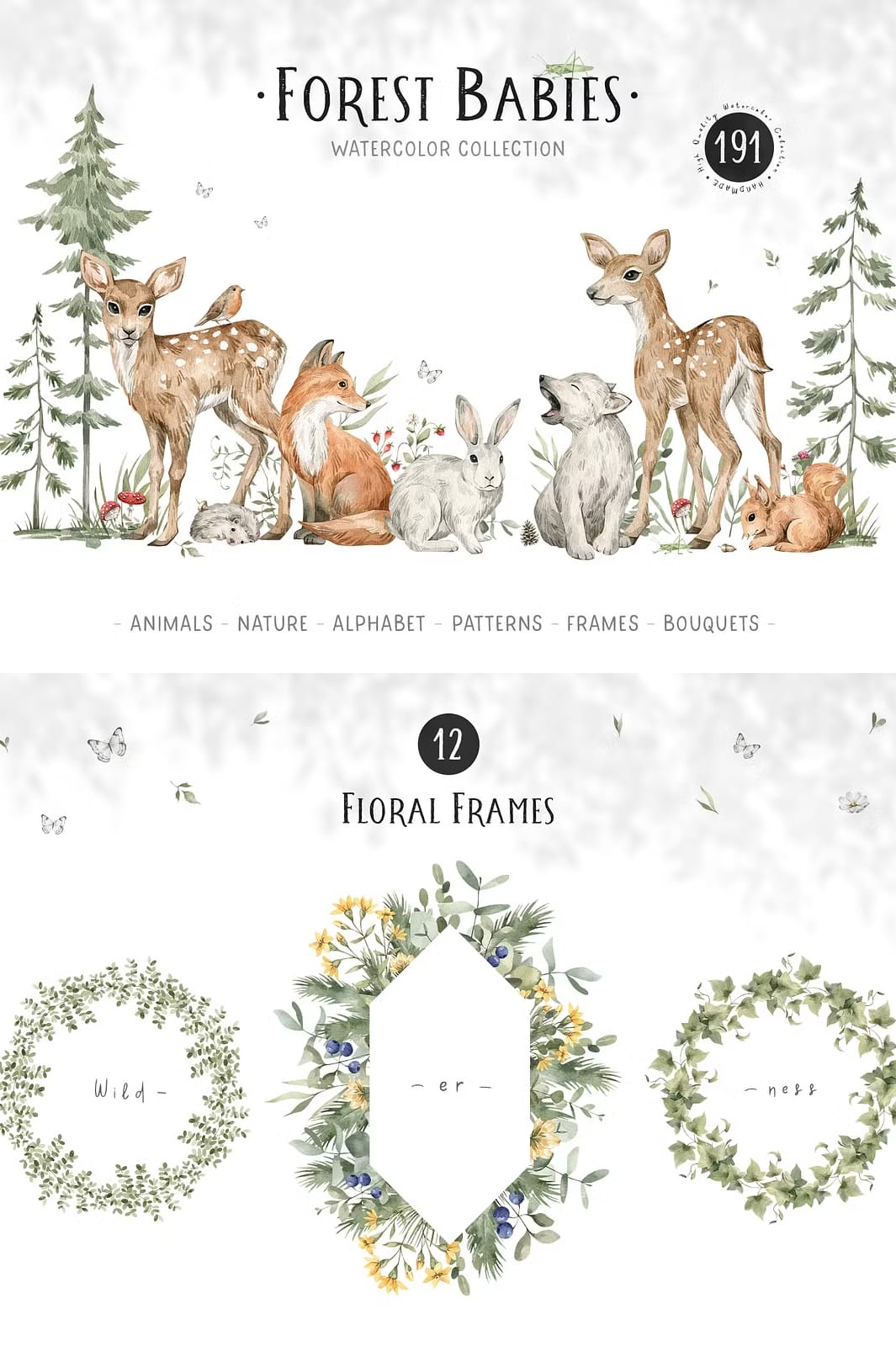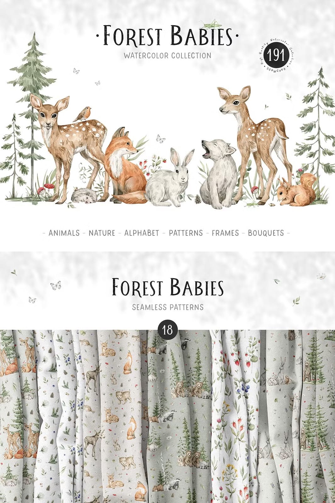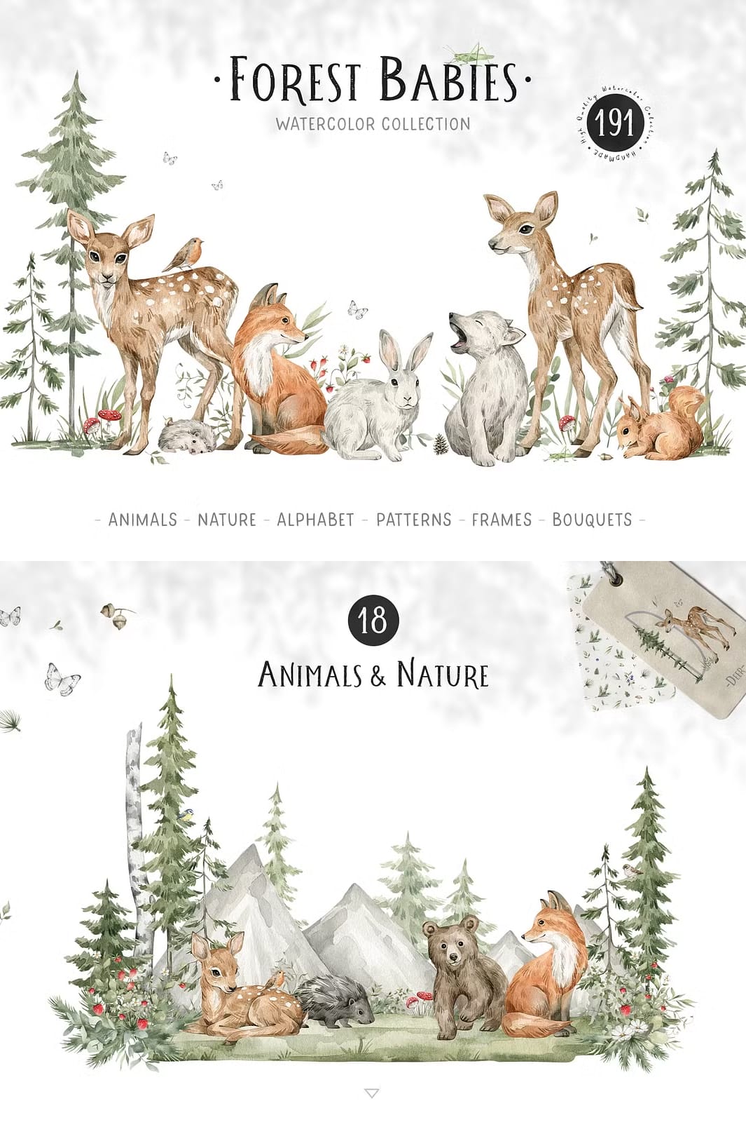 The Forest Babies Collection offers an atmospheric and heartwarming assortment of graphics that beautifully capture the essence of forest life. This collection features a wide variety of cute wild animals alongside stunning natural elements that work harmoniously together to create captivating scenes filled with wonder and charm.