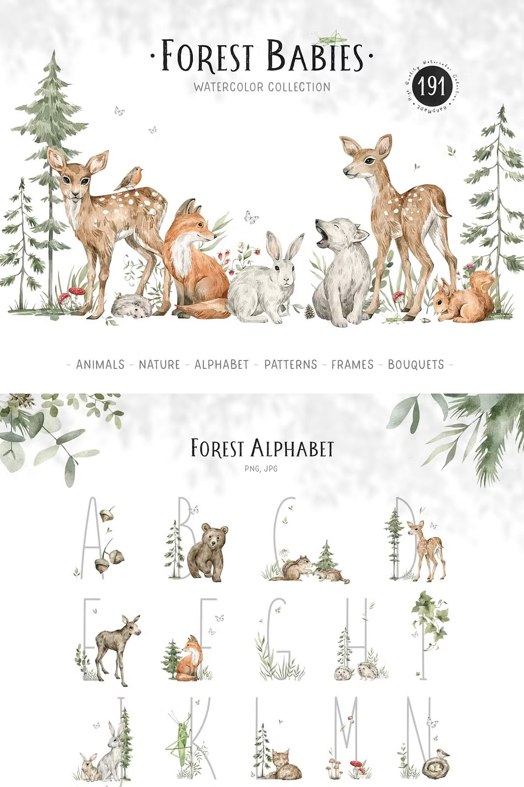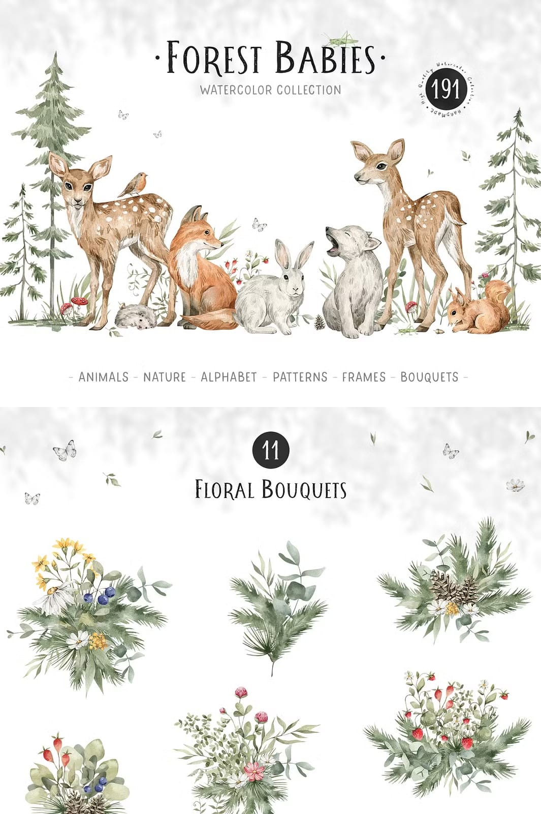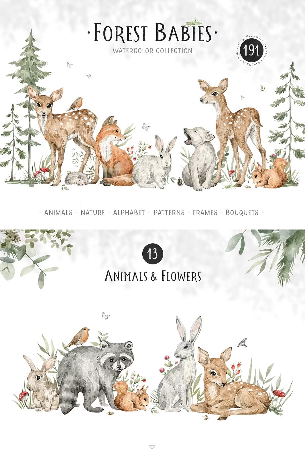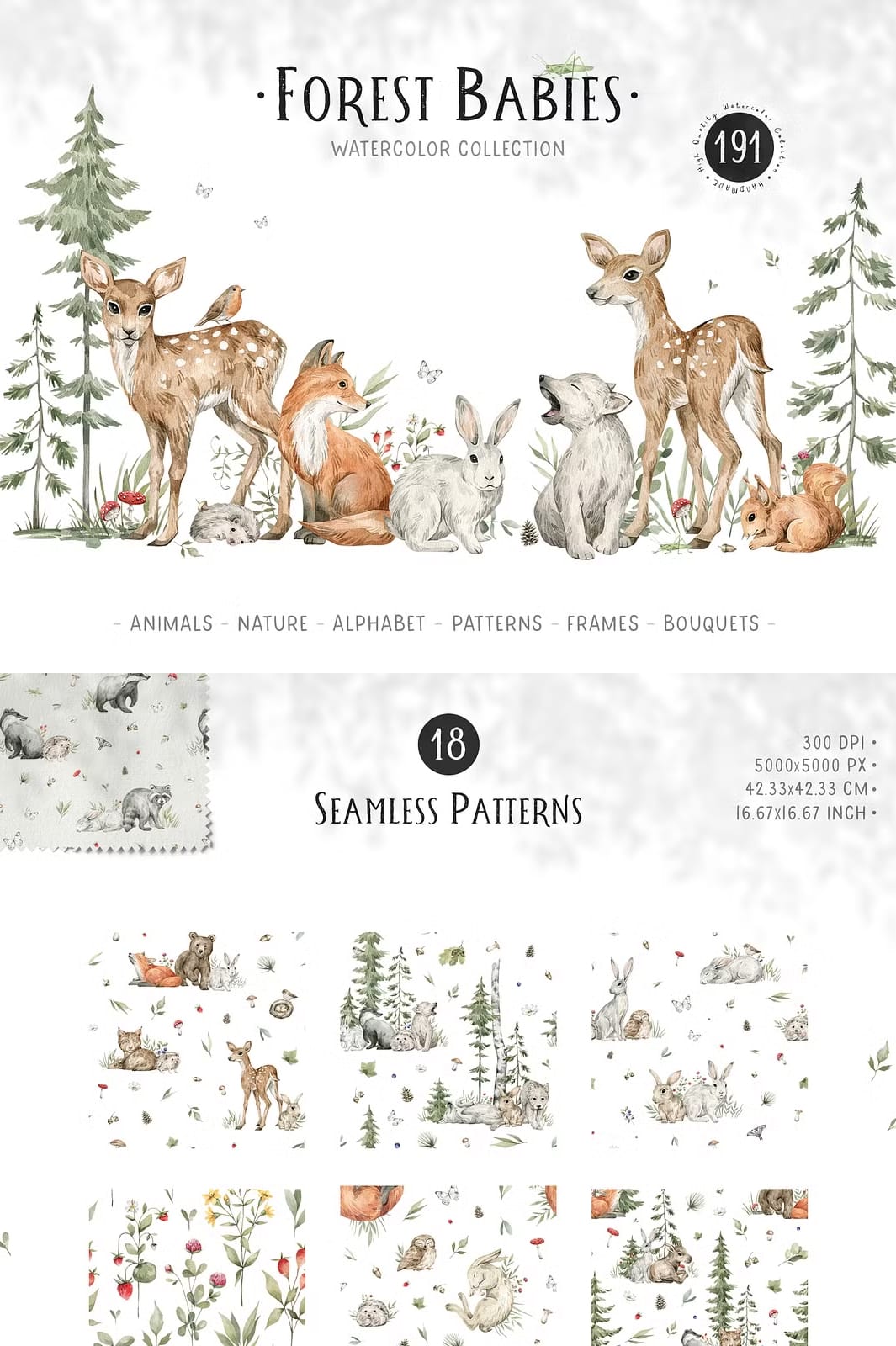 The Forest Babies Collection offers an atmospheric and heartwarming assortment of graphics that beautifully capture the essence of forest life. This collection features a wide variety of cute wild animals alongside stunning natural elements that work harmoniously together to create captivating scenes filled with wonder and charm.