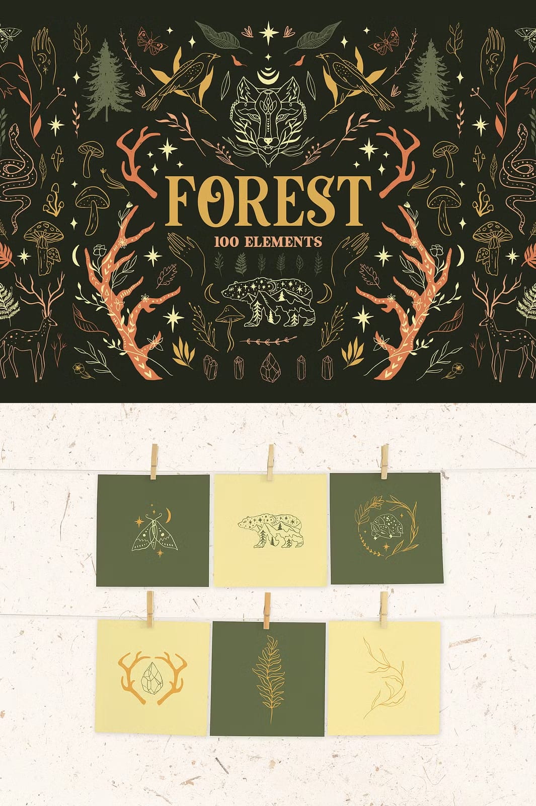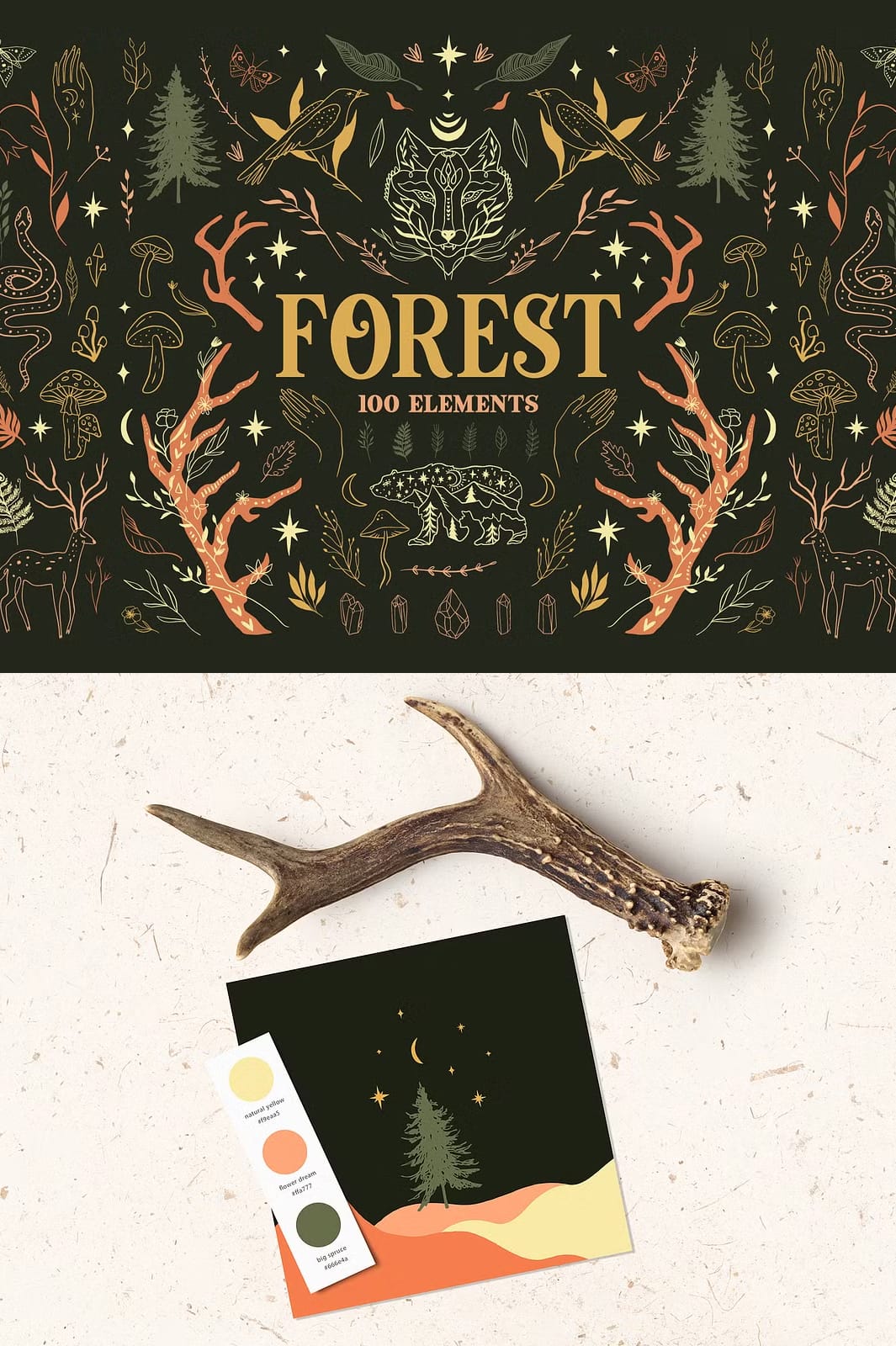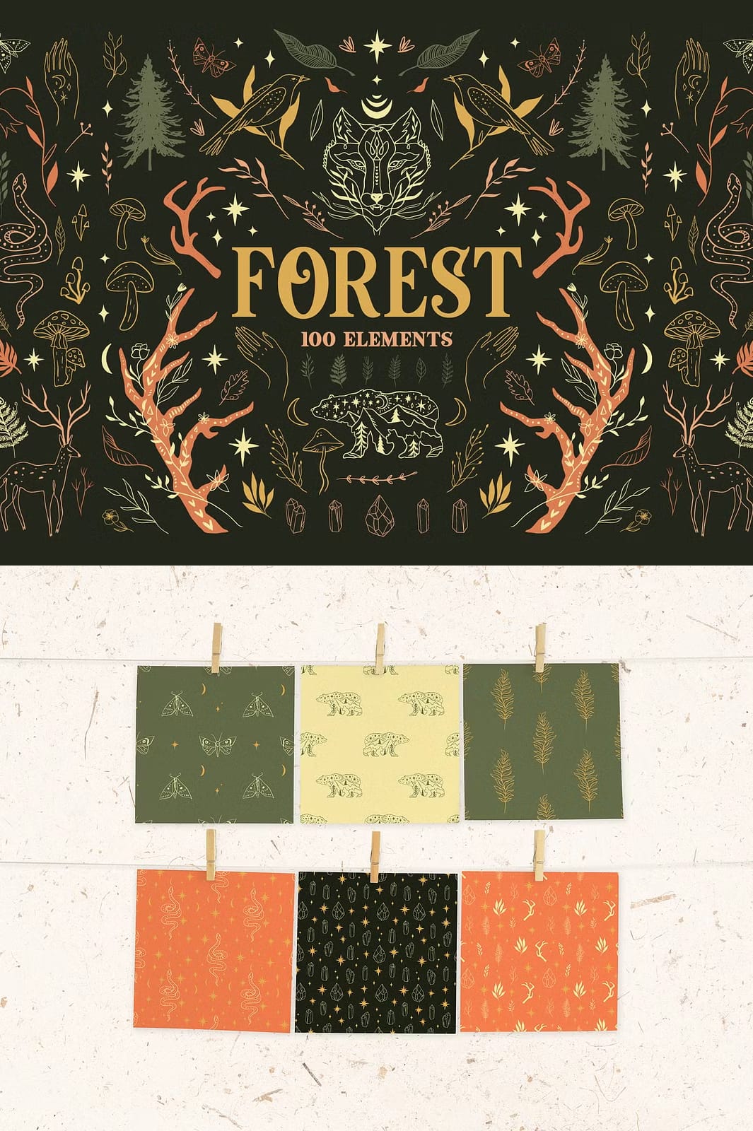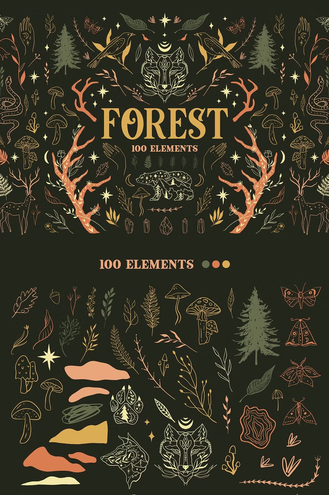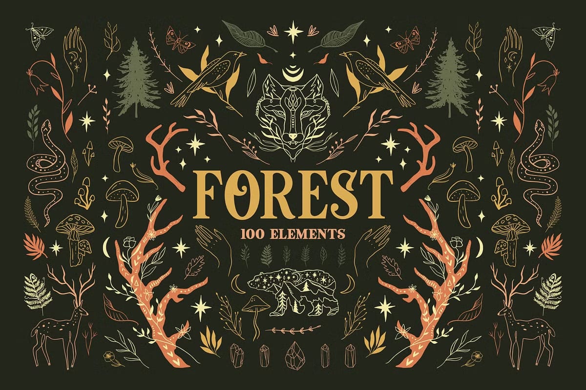 Whether you want to create intricate patterns, stunning illustrations, or cohesive branding materials, the Forest Bundle equips you with the tools to bring your vision to life. The harmonious blend of colors and detailed hand-drawn elements ensures your projects will stand out with authenticity and charm.