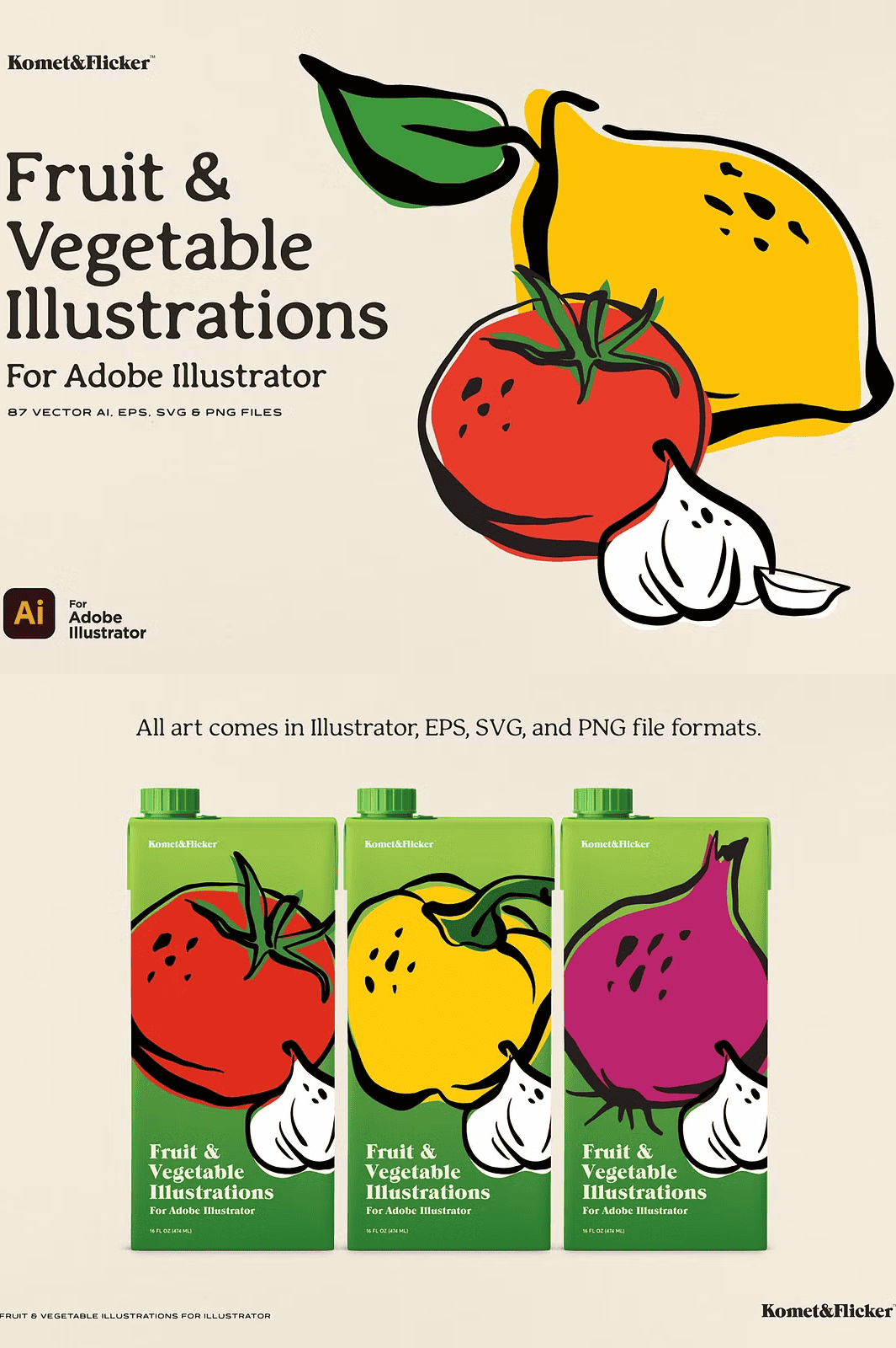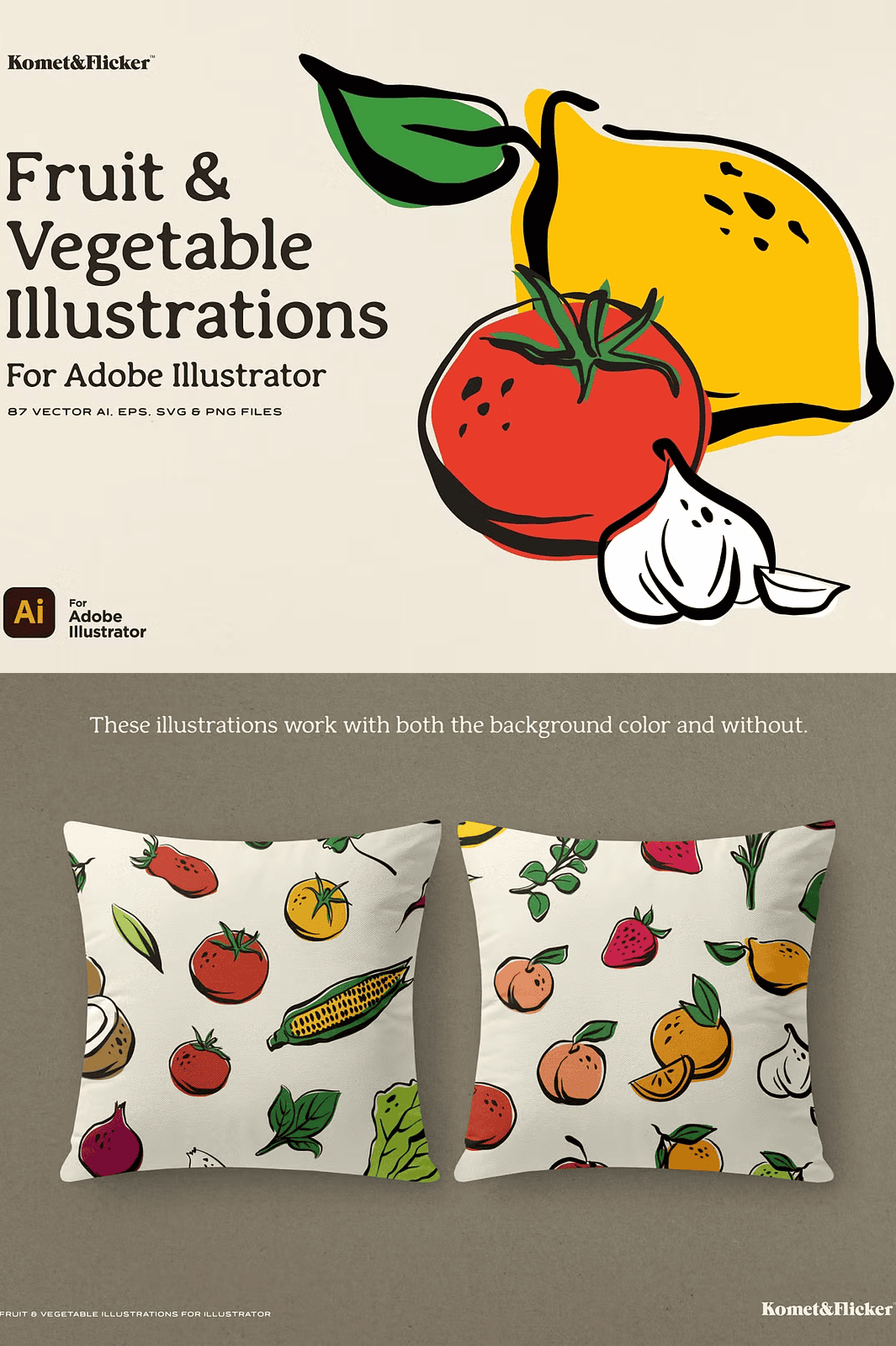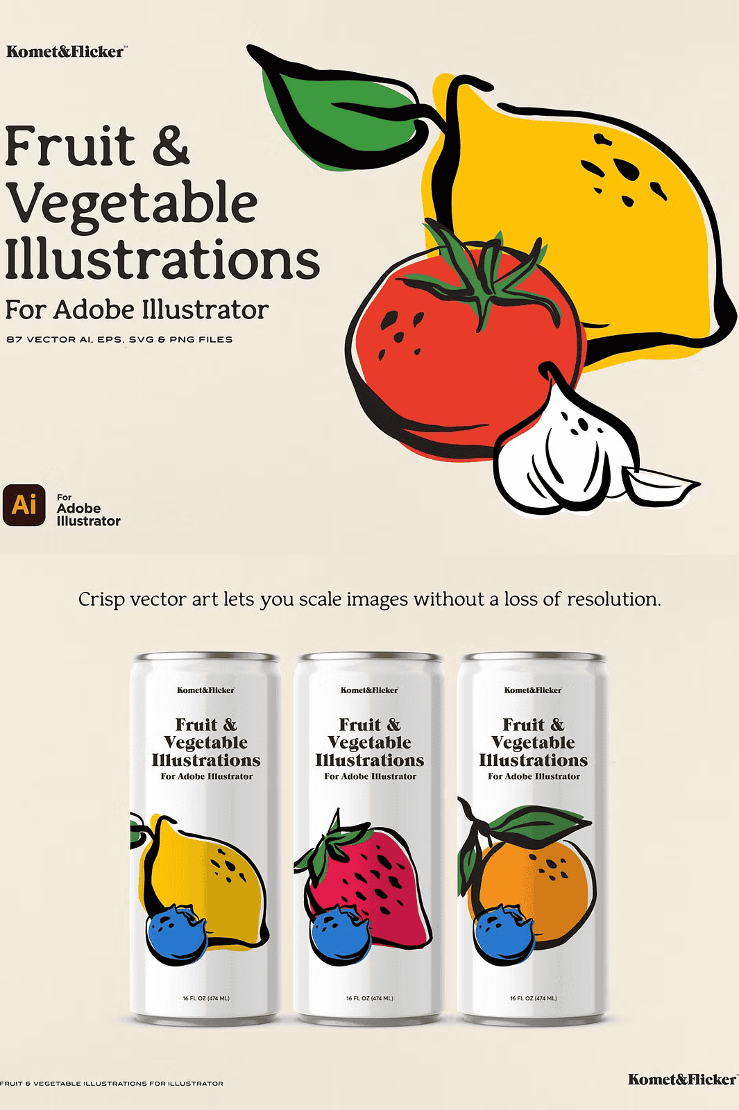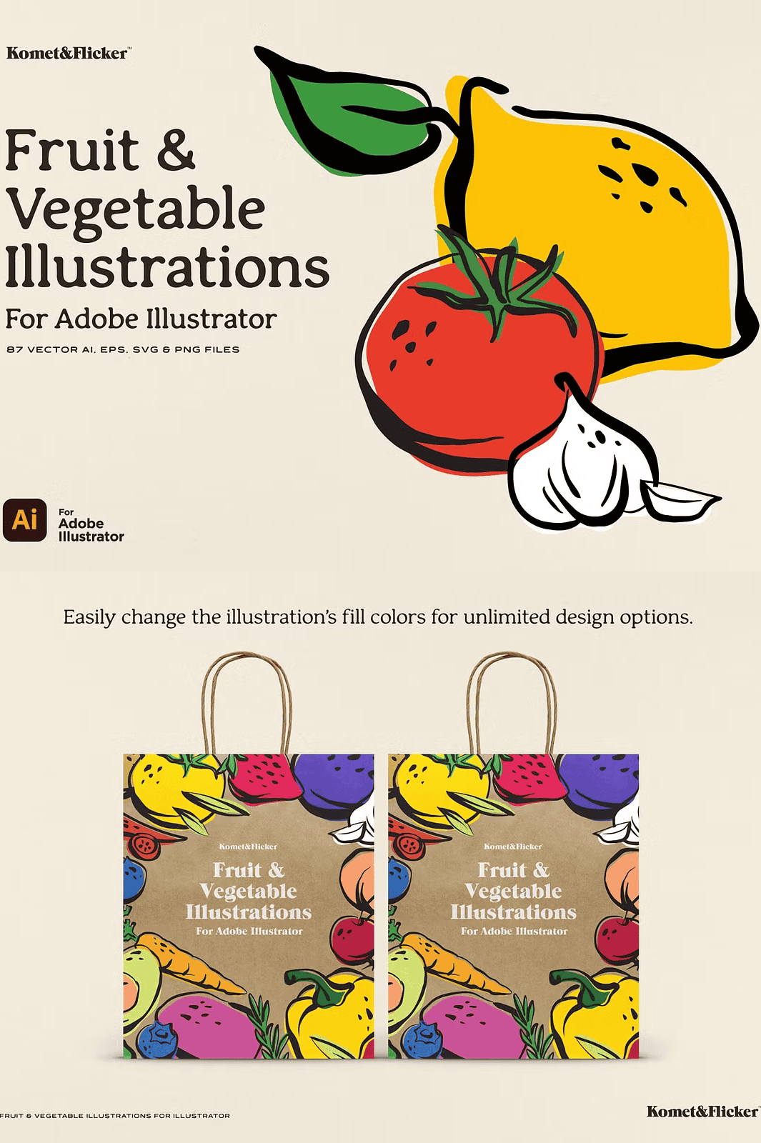 - Vegetables: Avocados, Broccoli, Carrots, Corn, Cucumber, Eggplant, Garlic, Lettuce, Onions, Peas, Peppers (Bell & Chili), Potatoes, Radish, Spinach, Tomatoes, Yam—ideal for farmers’ market branding, grocery packaging, or seasonal promotions.