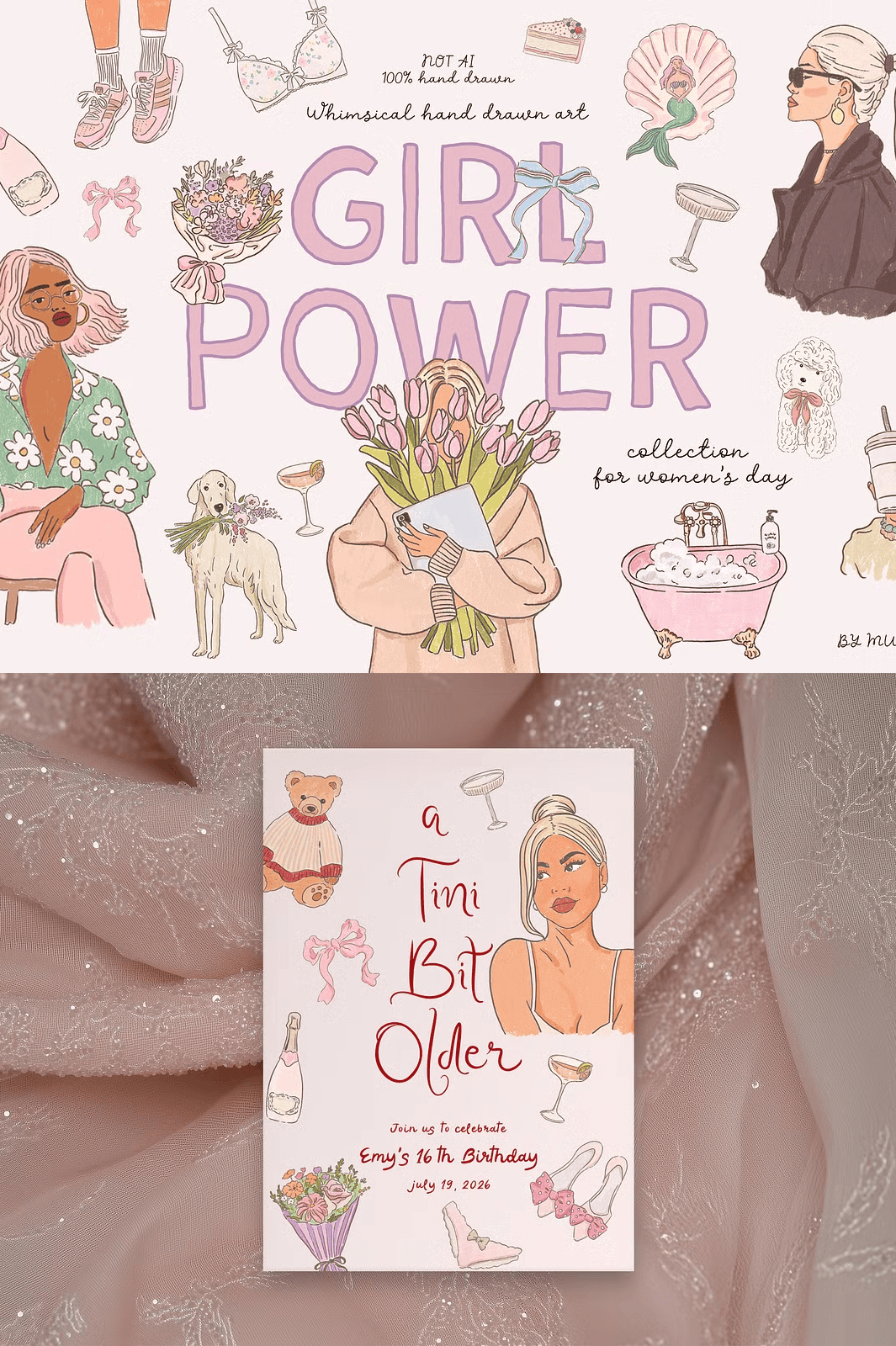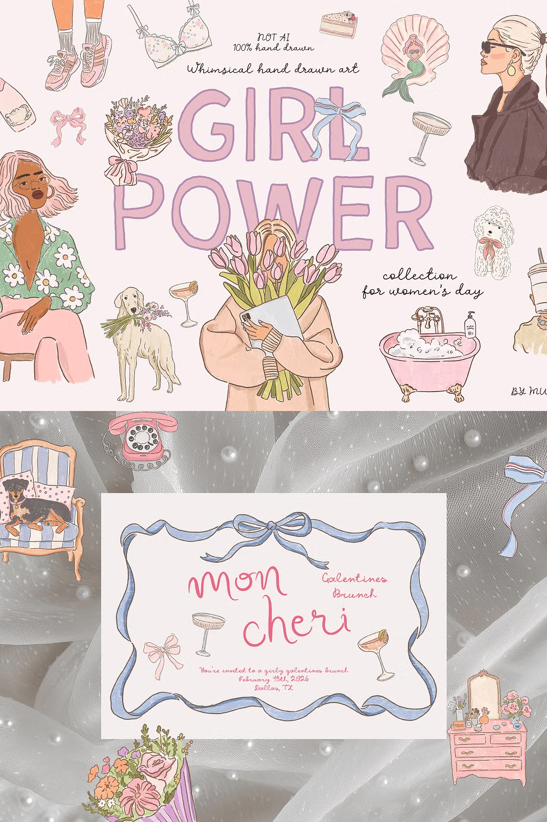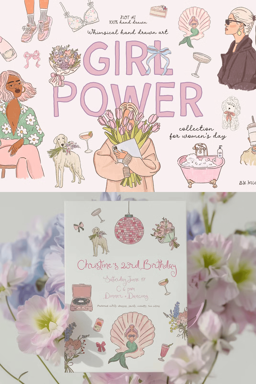 Whether you’re crafting unforgettable invitations for a girls’ night, designing heartfelt Mother’s Day cards, creating vibrant 8 March promotions, or building a gift line for her, this collection gives you the tools to inspire. Every design element is thoughtfully composed for instant impact and emotional resonance. Use the illustrations to elevate branding for women’s businesses, enhance social media content, build printable planners, or design stickers, apparel, and home décor. These visuals don’t just decorate—they connect, celebrate, and empower.