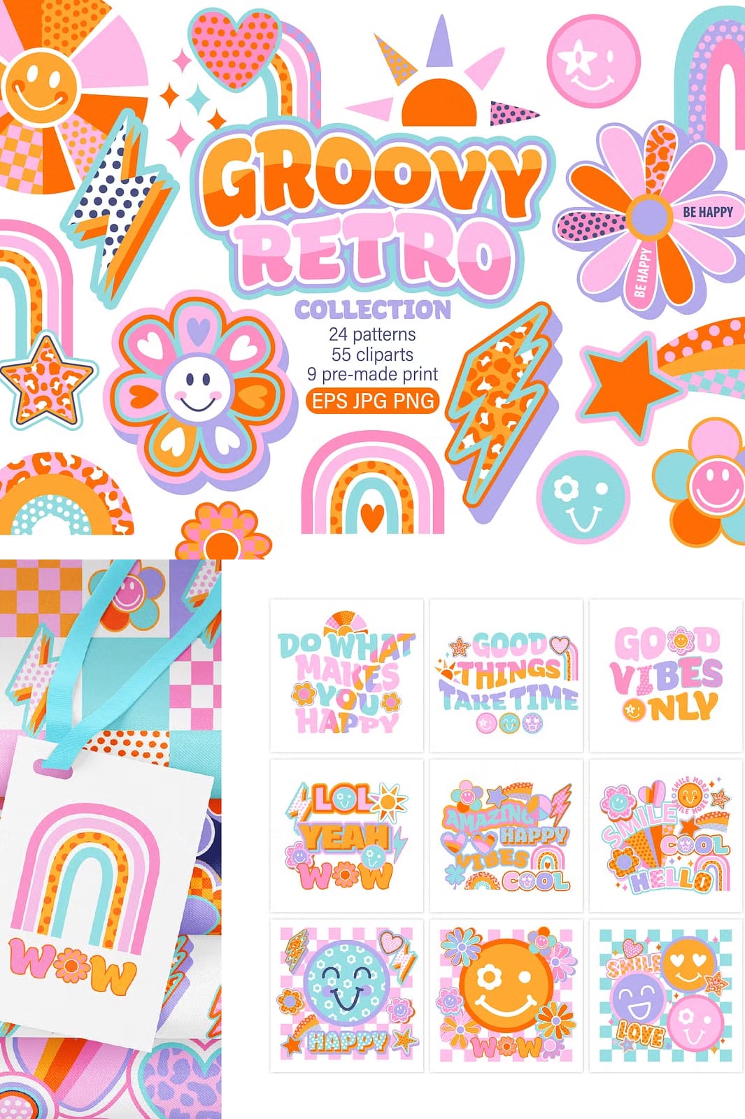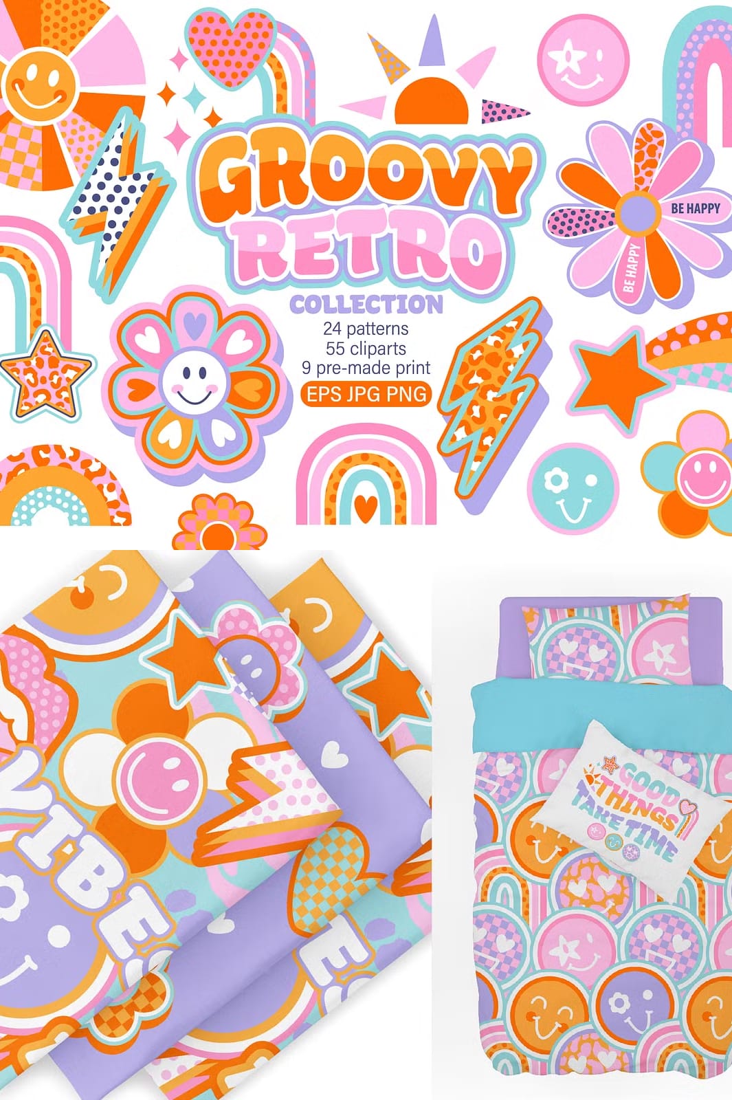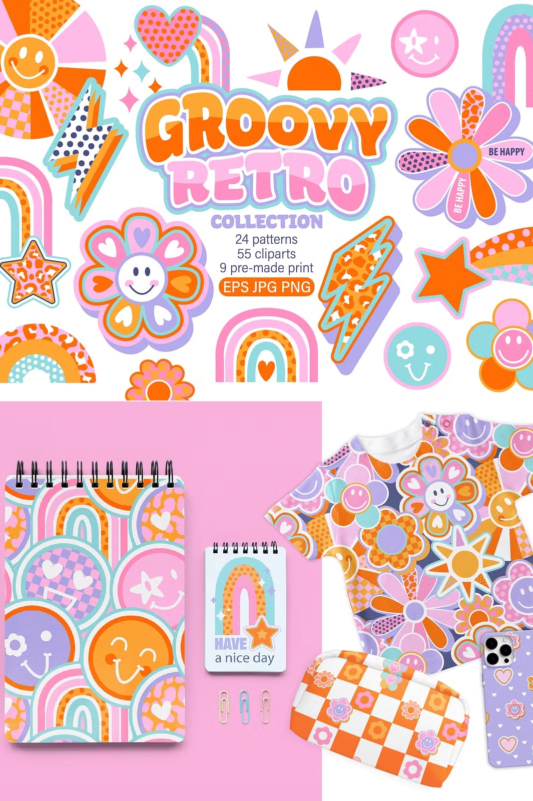 Optimized for fast implementation, the Groovy Retro Collection helps you generate delightful kids’ designs in next to no time. From nursery decorations to unique print and product designs, this collection empowers you to craft memorable visuals that stand out through engaging, retro-inspired artwork. It combines vibrant colors, playful motifs, and versatile elements that speak directly to a youthful audience’s sense of fun and nostalgia.