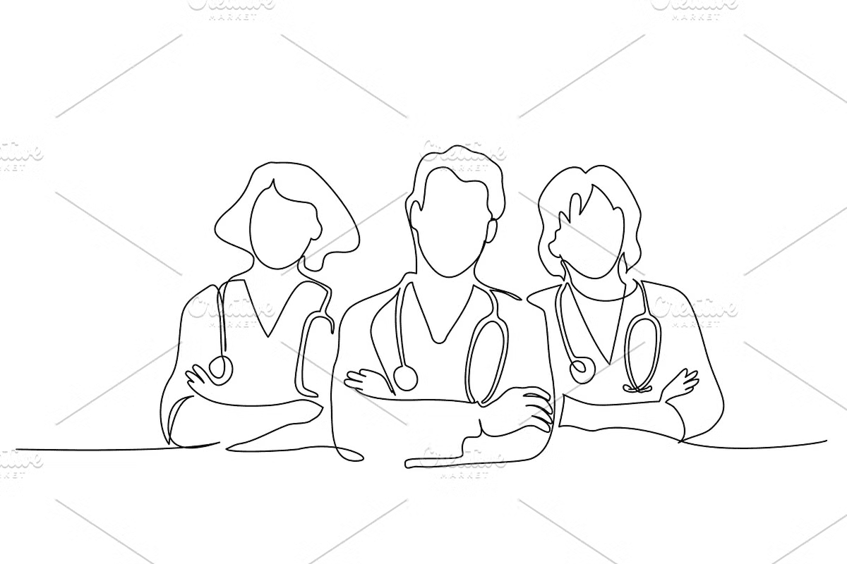 Elevate your medical and wellness communications with a bold, minimalist vector illustration crafted in a single fluid stroke. This **continuous one-line drawing of a team of doctors and therapists** captures the essence of collaboration, care, and professionalism in a sleek, modern design. Each line is intentional—no breaks, no clutter—delivering a powerful visual narrative of unity, continuity, and purpose. Ideal for healthcare branding, therapy websites, hospital patient portals, and wellness app interfaces.