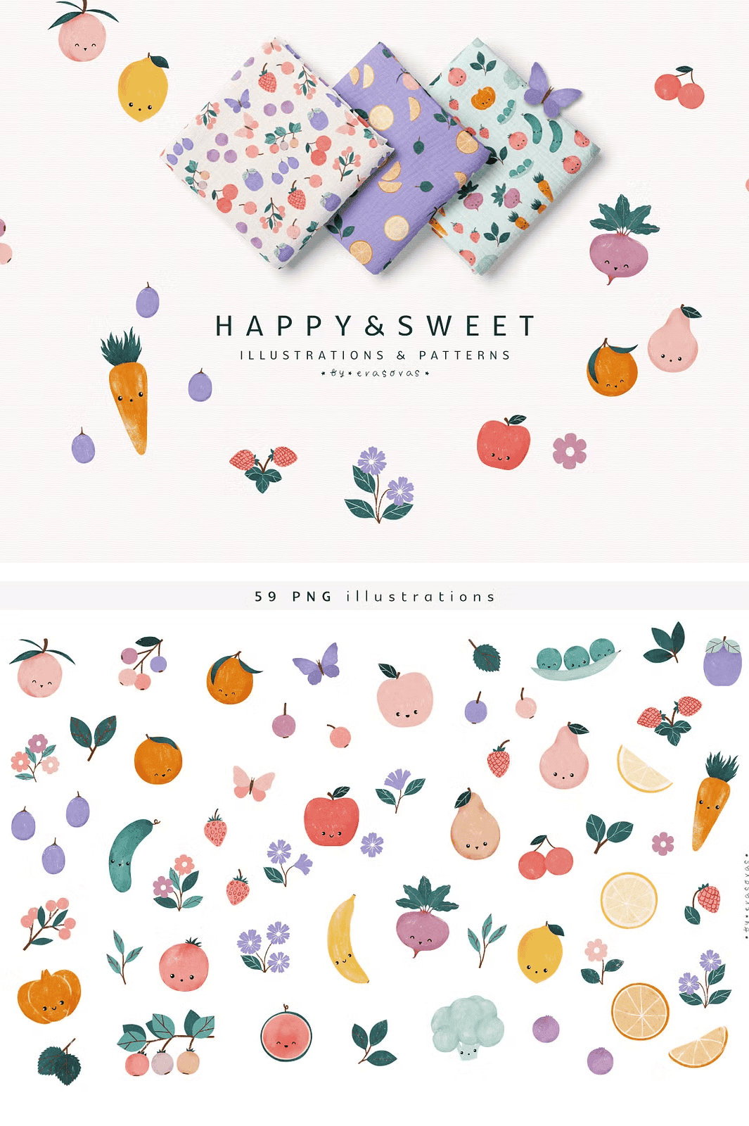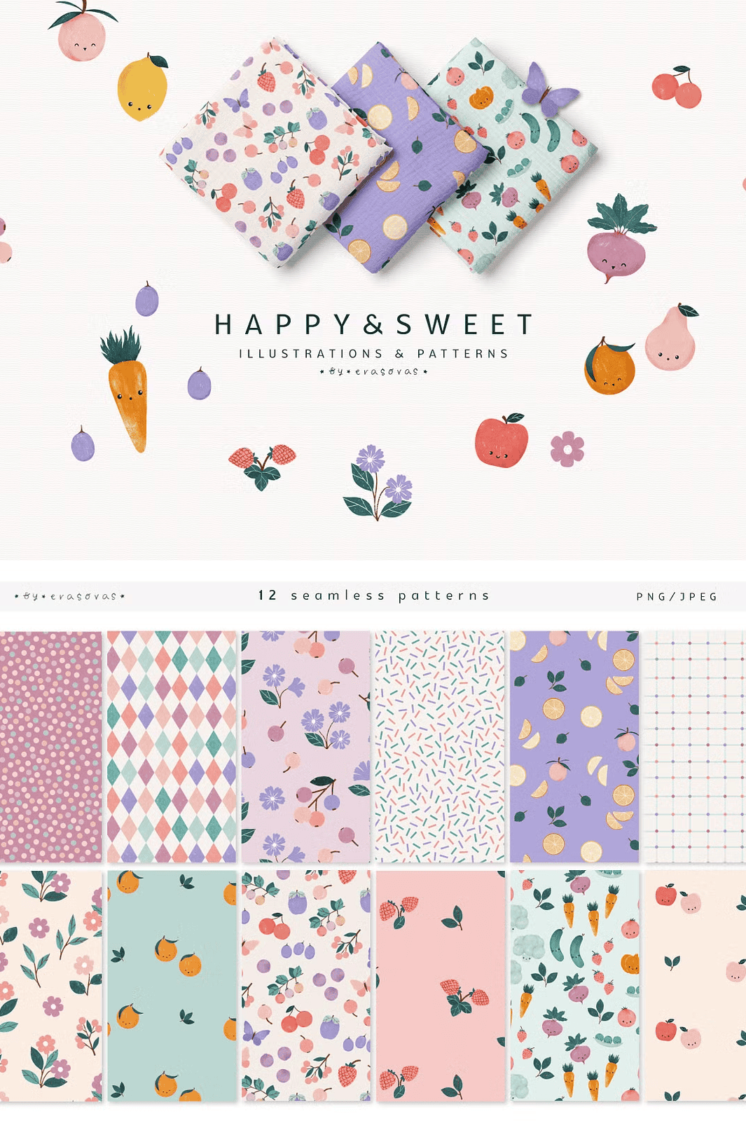 Step into a world of playful charm and artistic wonder with this delightful collection of **71 premium digital illustrations and seamless patterns**. Each element is handcrafted with care, radiating joy and positivity. Designed for creators who seek beauty, fun, and versatility, this set is perfect for bringing bright ideas to life in any project — from baby nursery décor to fabric prints, wall art, postcards, and beyond.