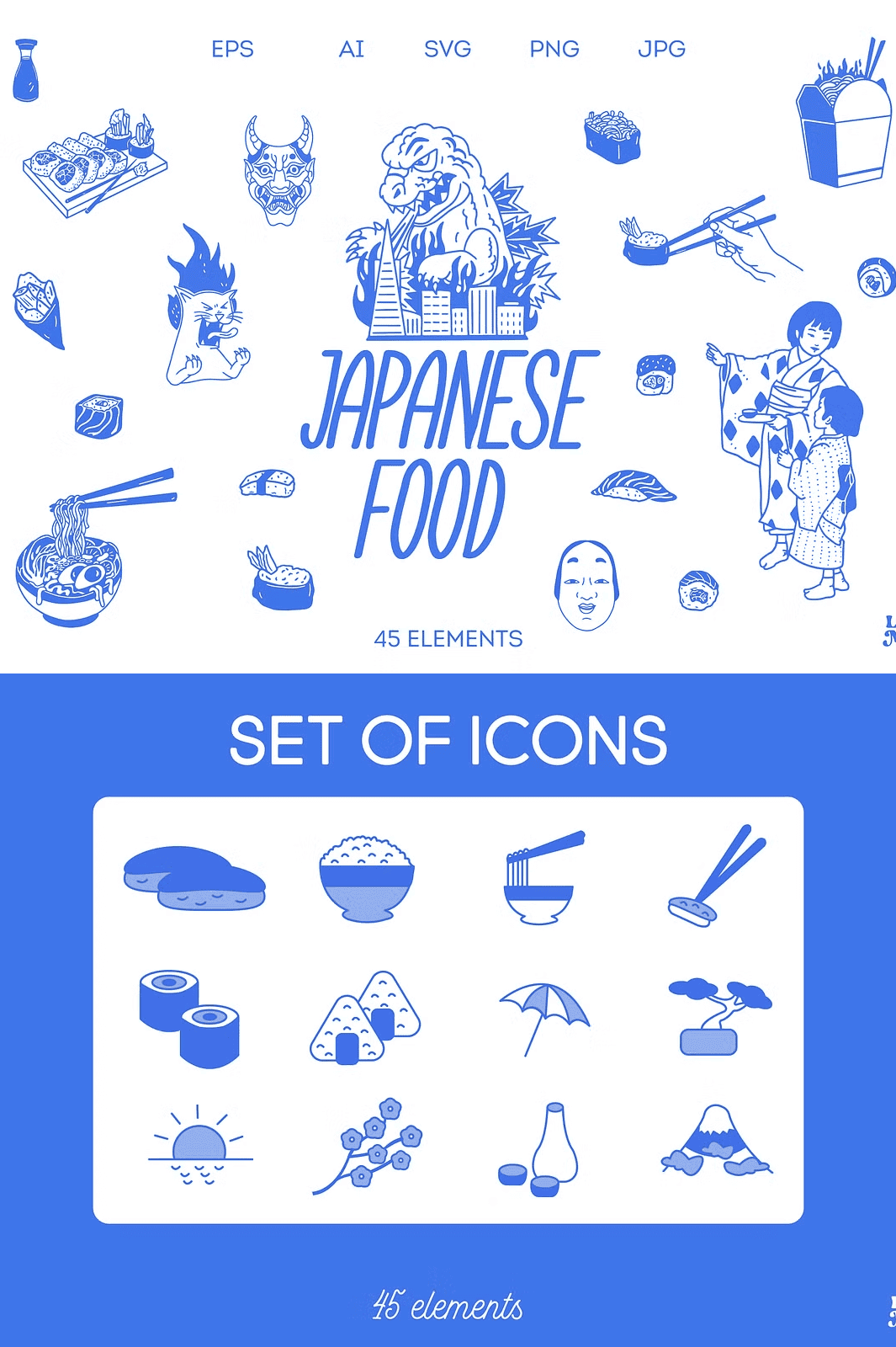 Access your Japanese-inspired assets in multiple formats across vector and raster platforms, making this bundle adaptable for any workflow: