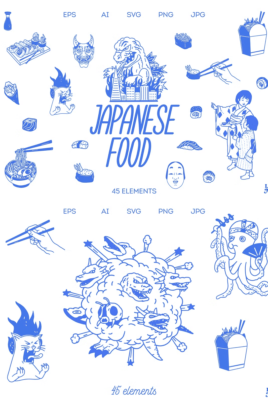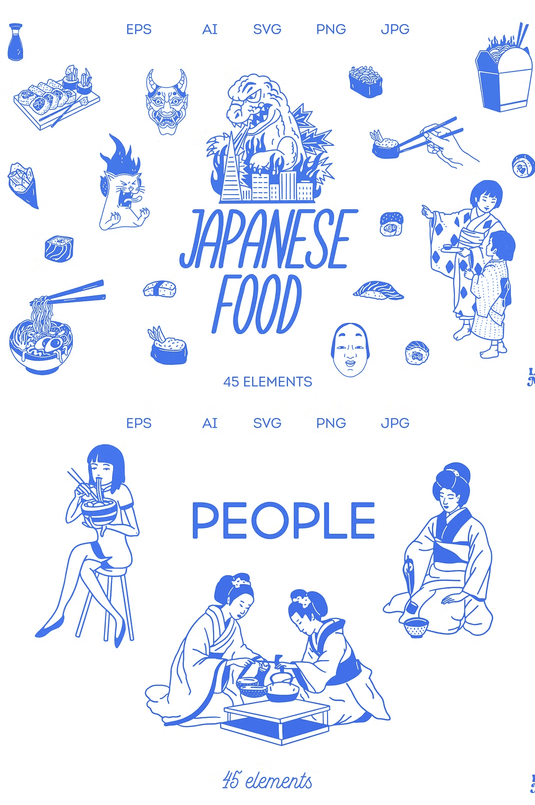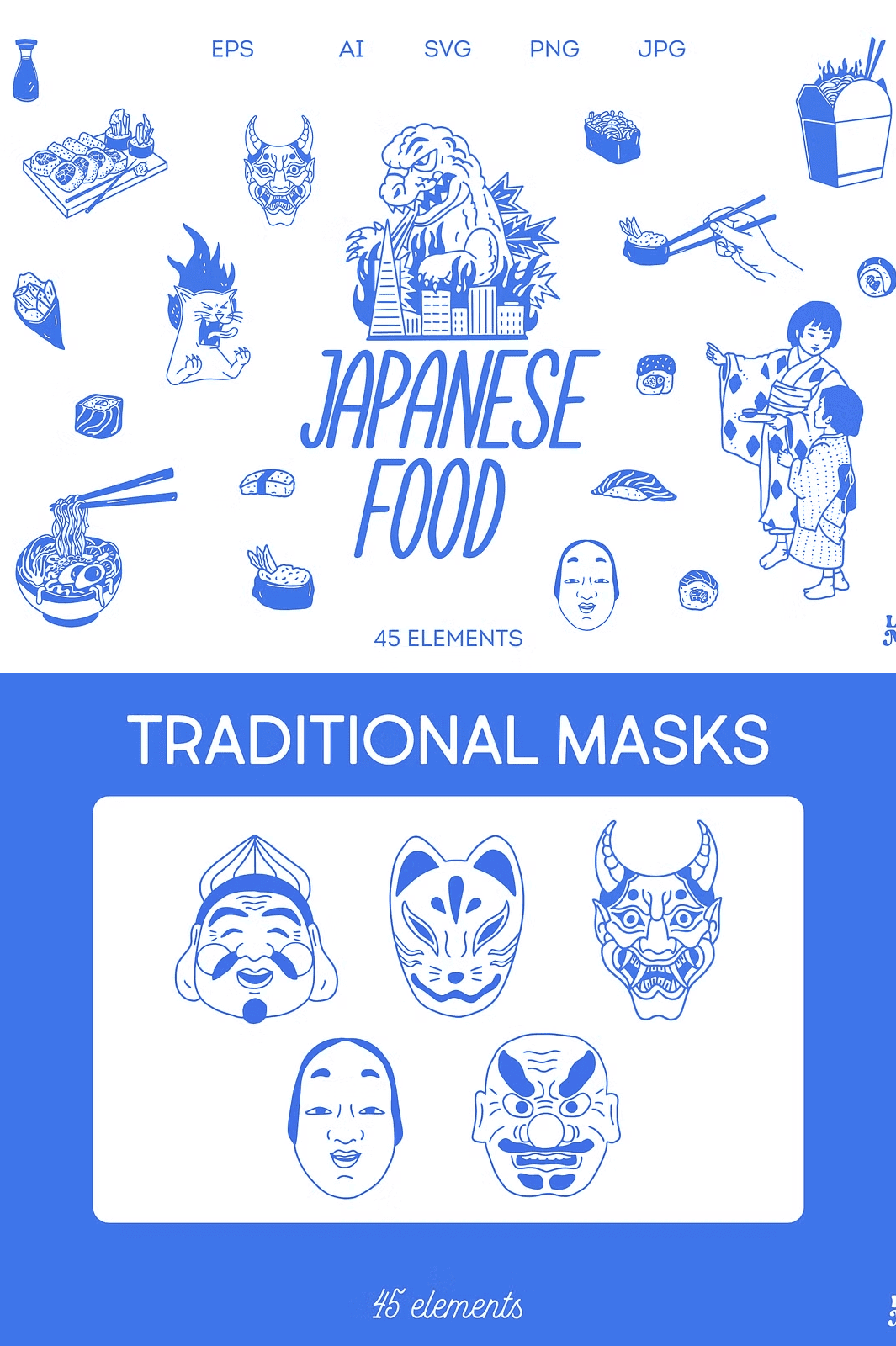 Unlock a world of rich tradition and artistic beauty with the Japanese Food Bundle Vector Illustrations—a meticulously crafted collection of 59 hand-drawn elements inspired by authentic Japanese culture. This diverse bundle brings together iconic food, graceful geishas, traditional masks, expressive animals, and culturally significant symbols, all designed with precision and aesthetic harmony. Whether you’re building a brand identity, designing apparel, creating stunning posters, crafting unique tattoos, or assembling eye-catching collages, this set gives you powerful visual tools rooted in timeless Japanese artistry. Experience the elegance, balance, and storytelling depth that only traditional motifs can offer.