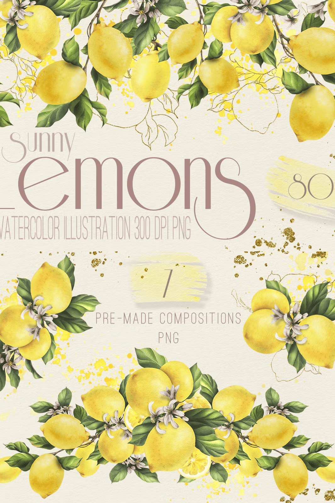 - 7 Pre-Made Compositions: Ready-to-use layouts featuring lemons arranged in natural, artistic groupings—ideal for instant use on greeting cards, menus, or digital backgrounds.