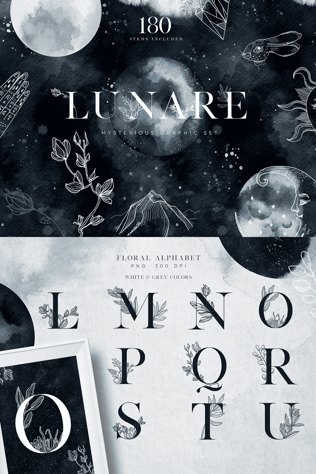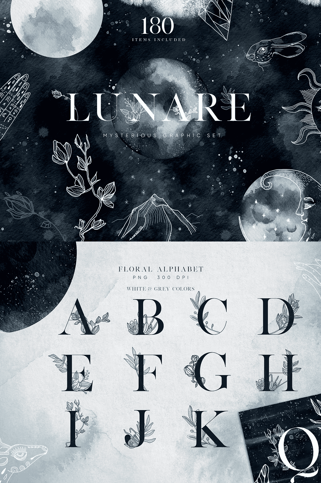 From eclipsed moons to floral alphabets and hand-drawn engravings, Lunare invites you to explore themes of mystery, transformation, and quiet power. Whether you’re crafting exclusive wedding invitations, designing premium stationery, building a unique brand identity, or creating conceptual digital art, this set offers the perfect blend of elegance and enigma.
