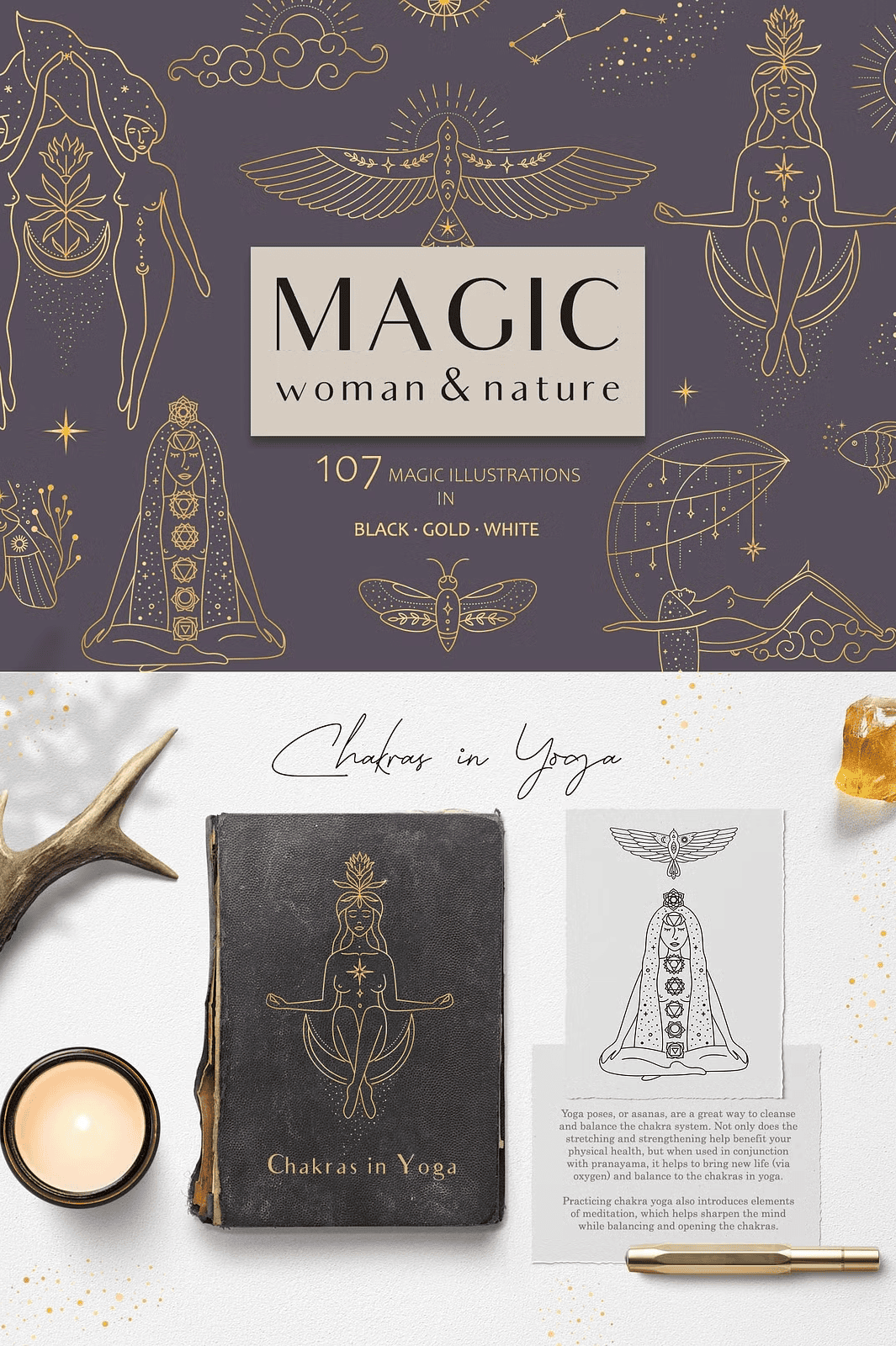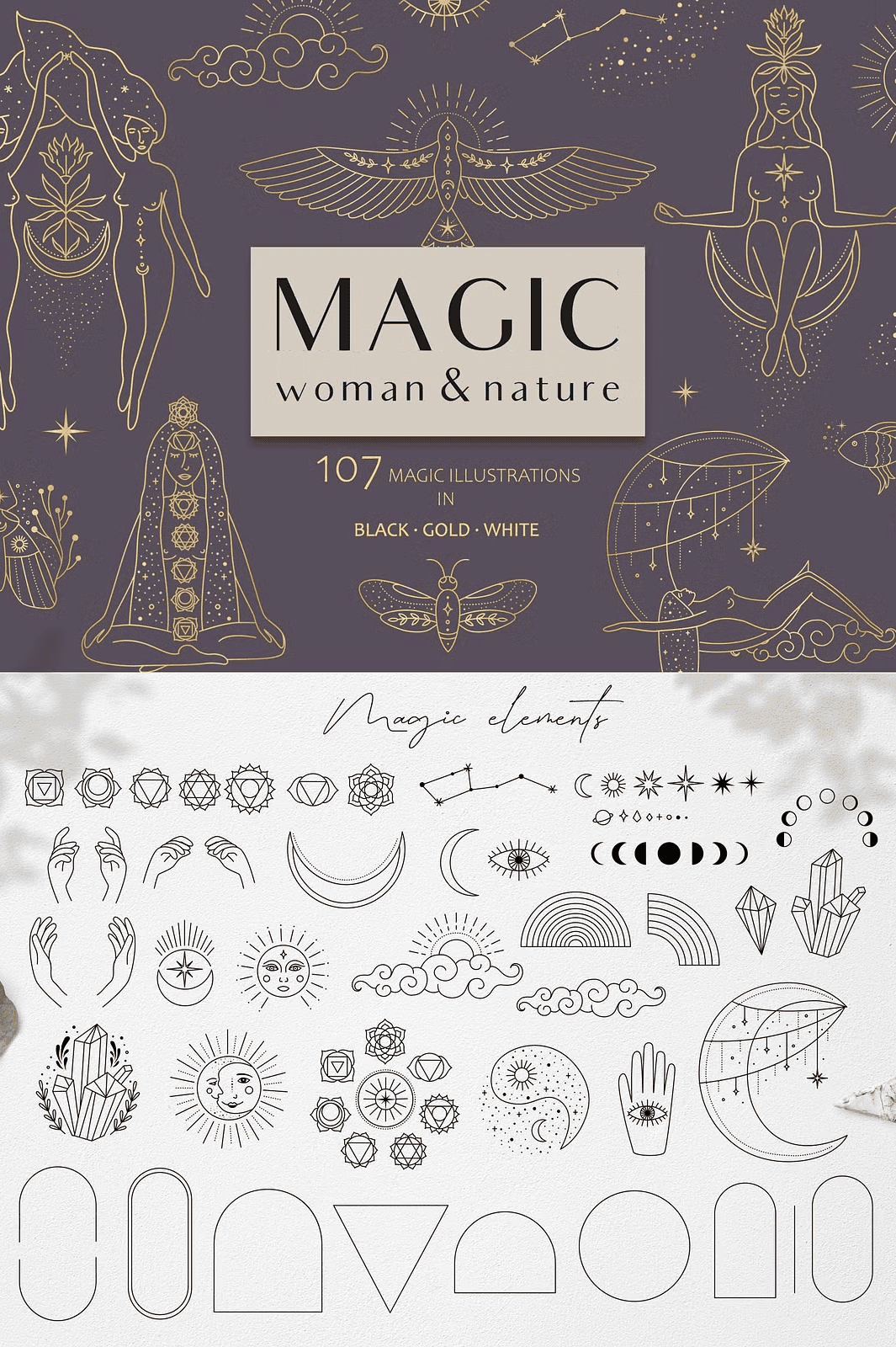 – **61 Magic Elements in Gold** – Shimmering and symbolic—bring opulence to your designs with radiant spiritual motifs.