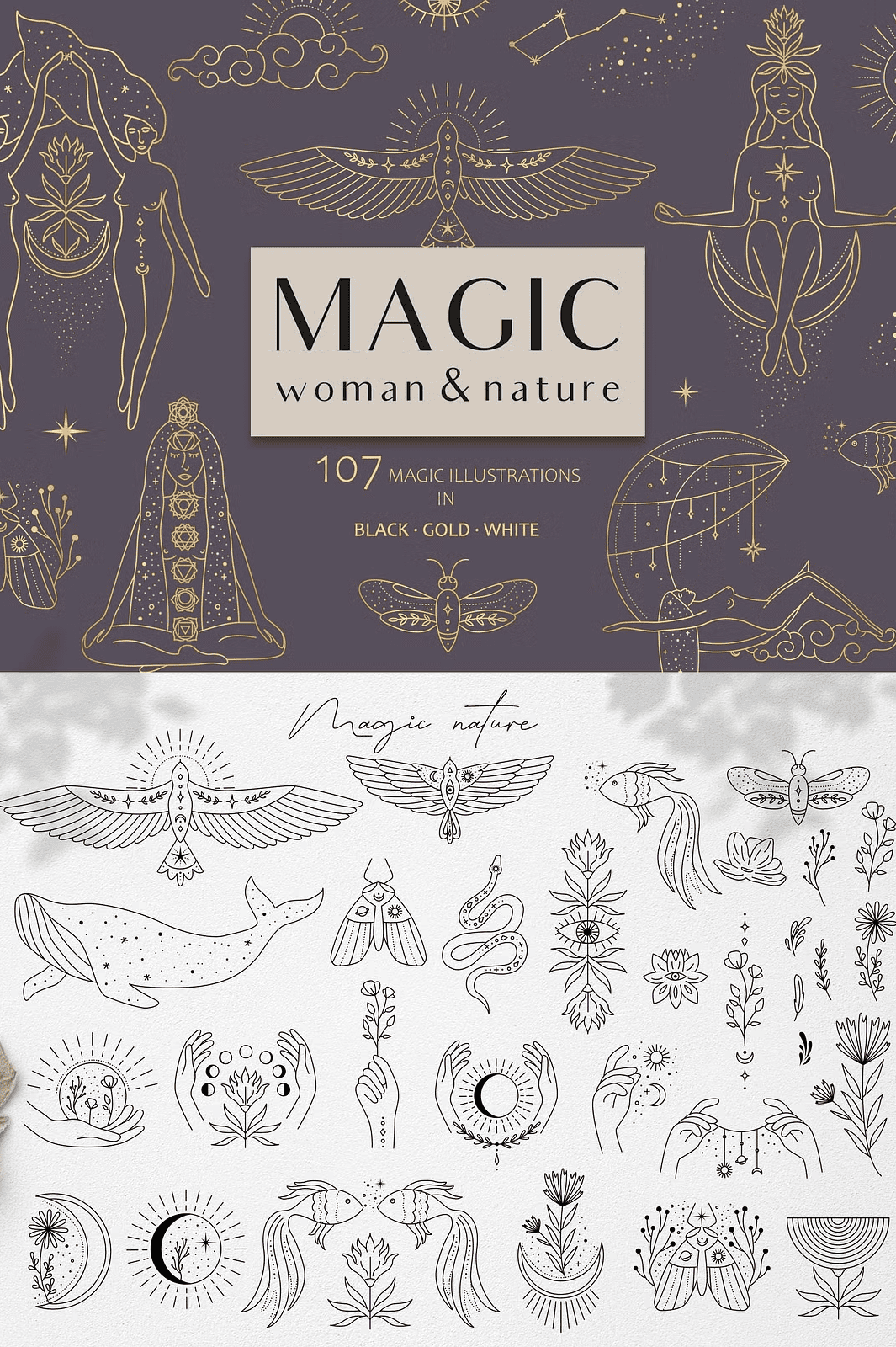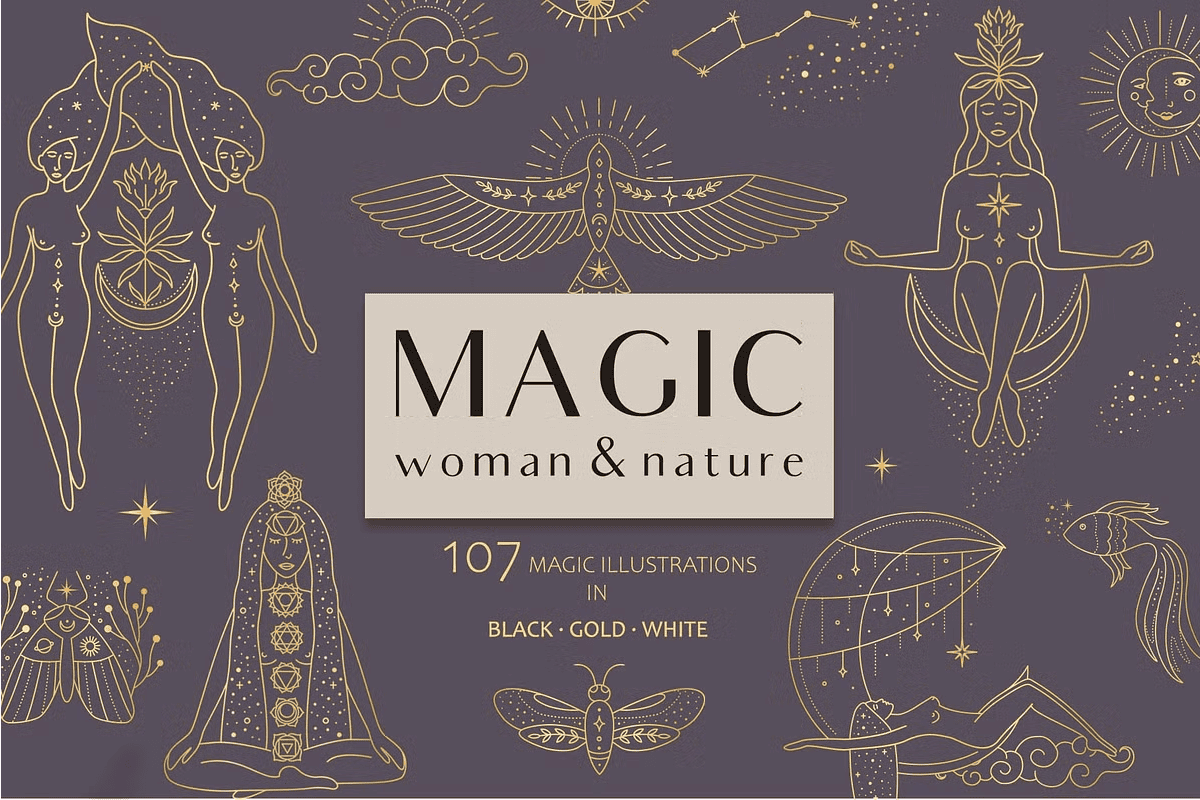 Infuse your creative projects with timeless magic and ethereal beauty using the **Magic Woman & Nature** collection—107 meticulously crafted illustrations that blend feminine mystique, elemental power, and natural harmony. This visionary bundle is designed for designers, brands, and creators seeking to elevate their work with art that speaks to the soul. Whether you’re building a brand identity, designing for fashion, crafting social content, or launching a spiritual product line, this collection delivers instant inspiration and professional-grade quality.