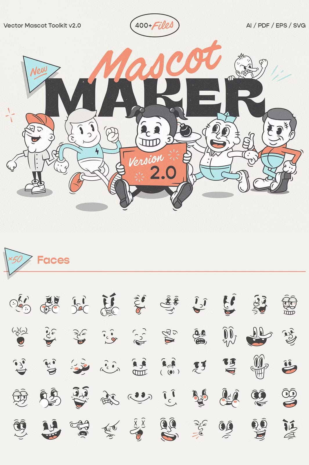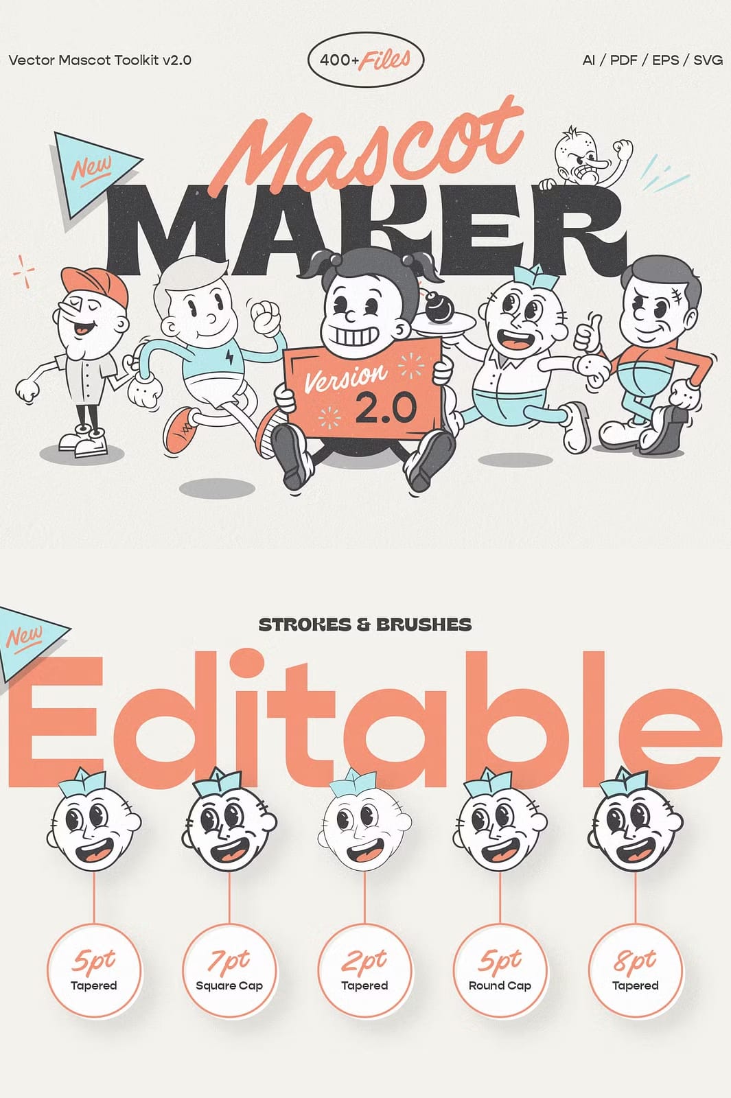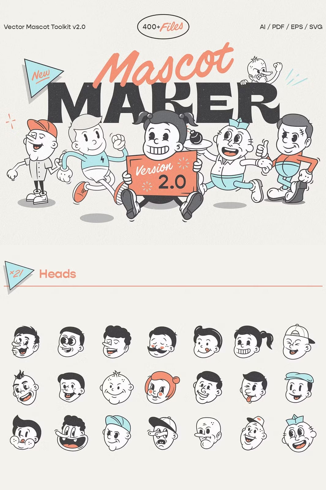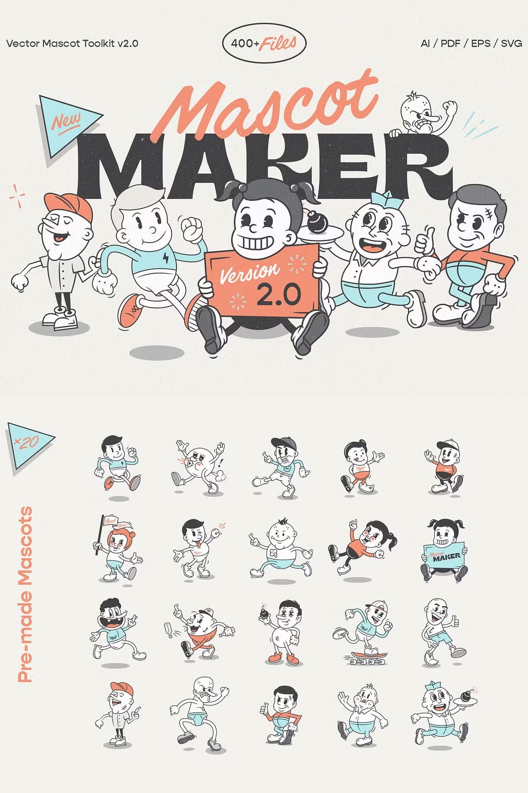| Pre-made Mascots | 20 | AI, EPS, PDF, SVG |