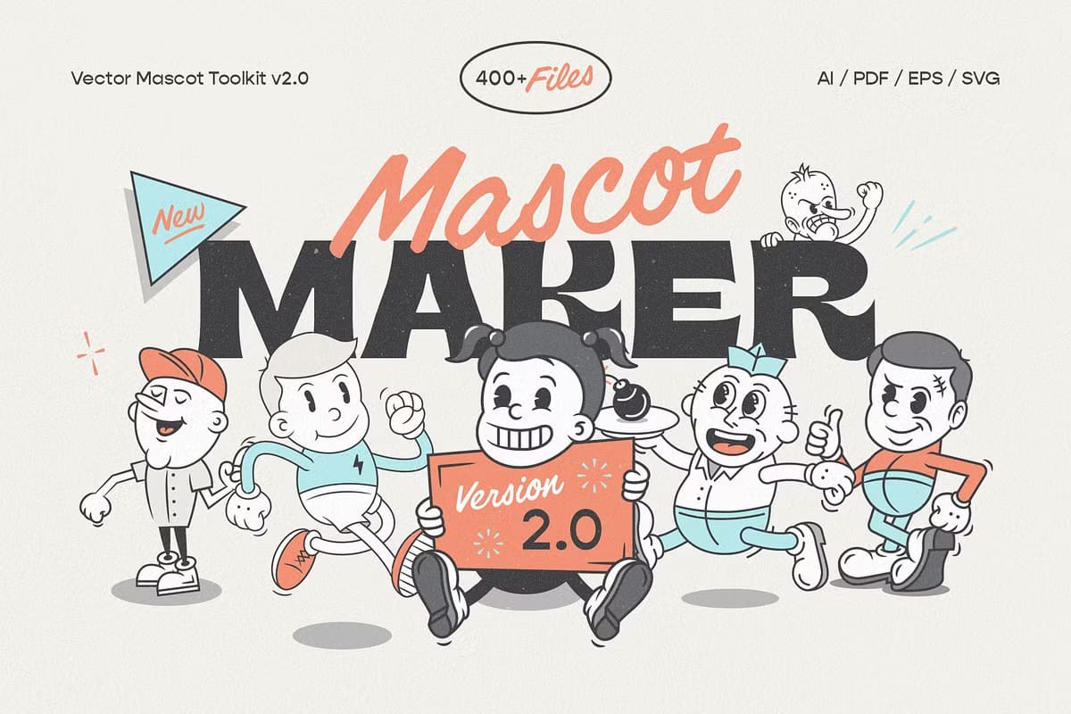 Experience unparalleled flexibility and creative power with Mascot Maker v2.0, an expanded and redesigned vintage retro mascot character collection. This upgraded toolkit has more than doubled in size, delivering over 400 unique illustrations tailored for easy editing and customization. Creative professionals and enthusiasts will find it perfect for designing striking posters, eye-catching t-shirts, retro logos, and much more. Take advantage of a collection designed to save you time and amplify your creative expression.