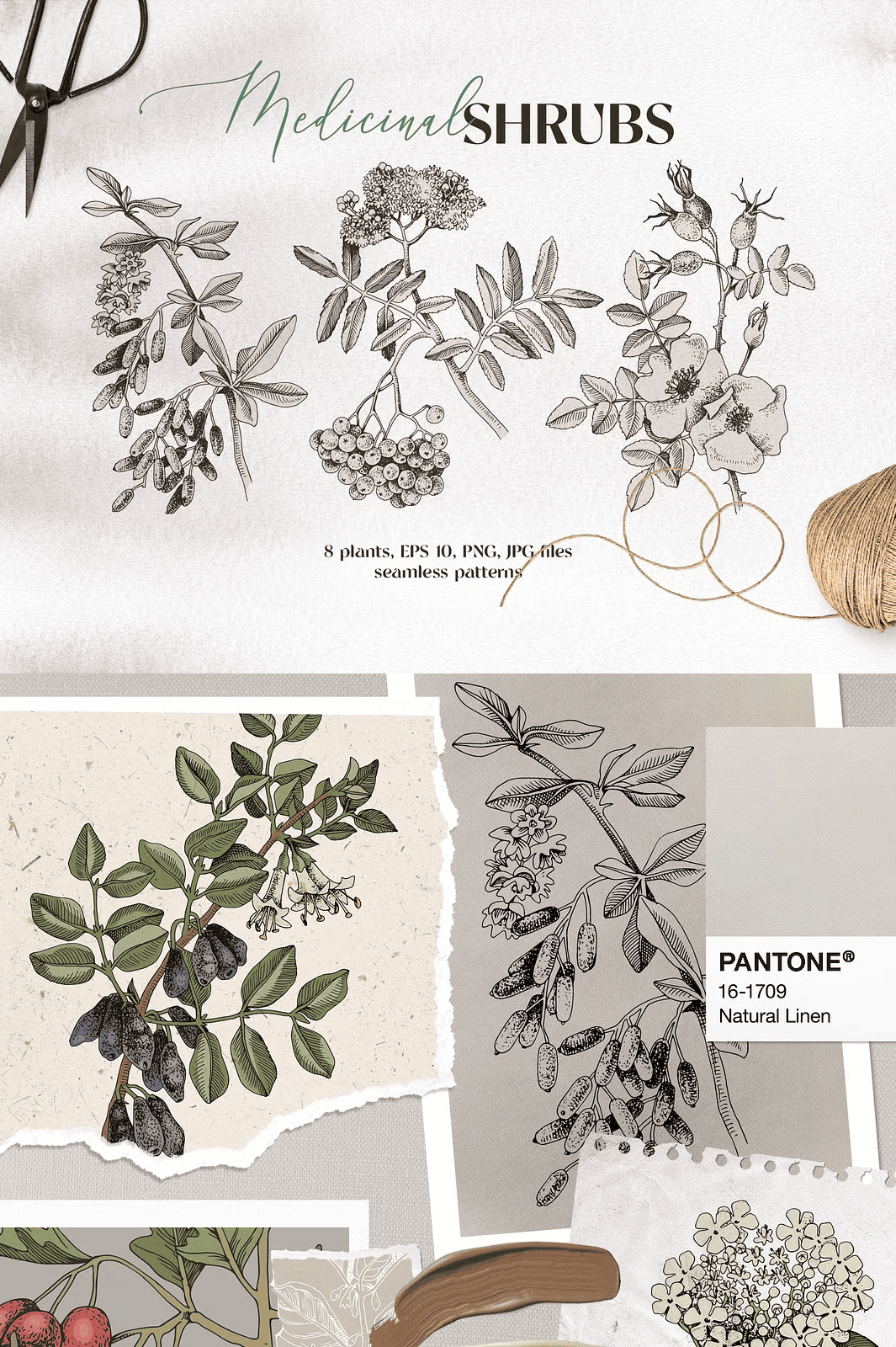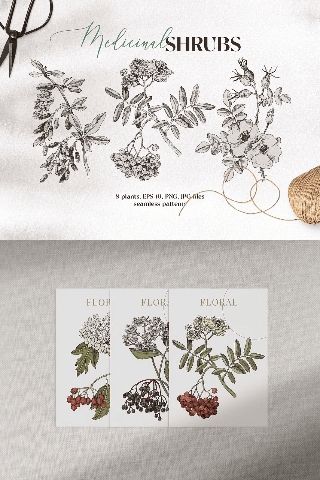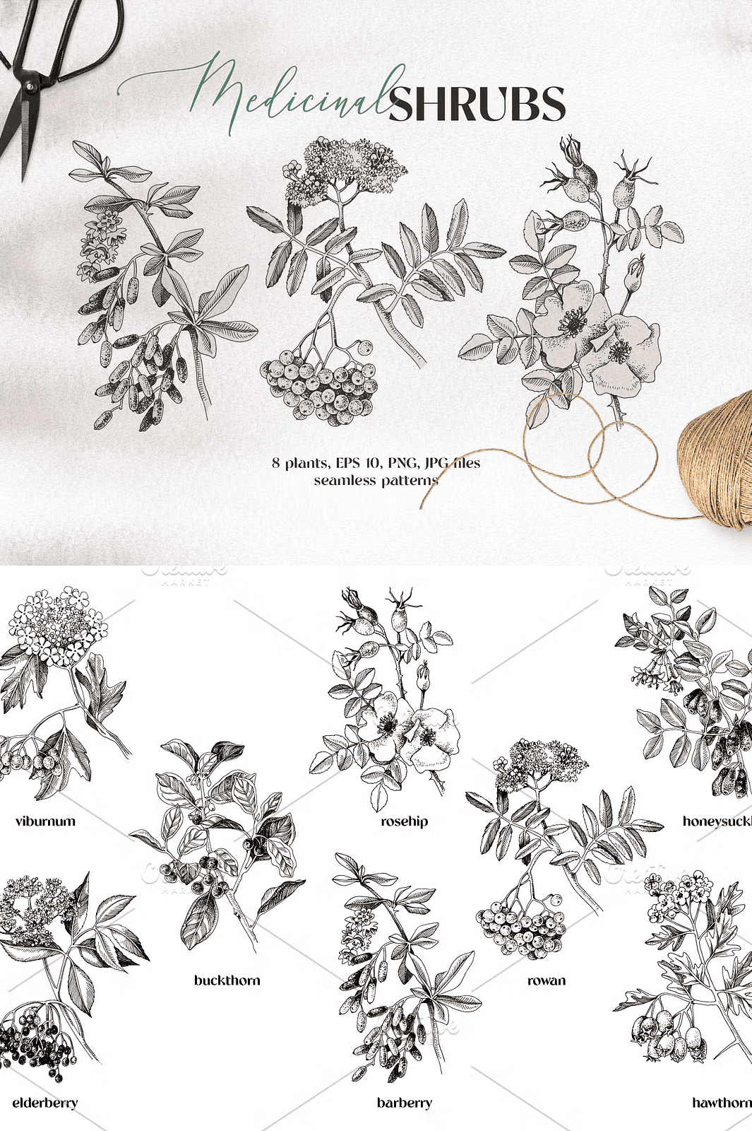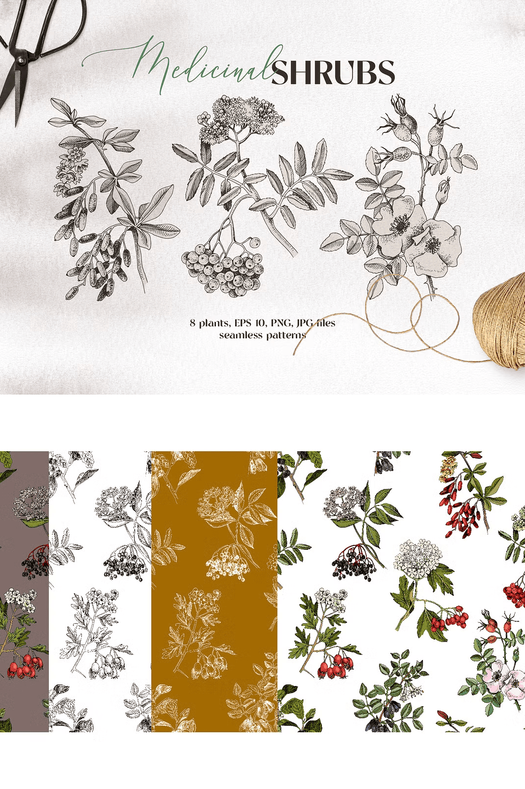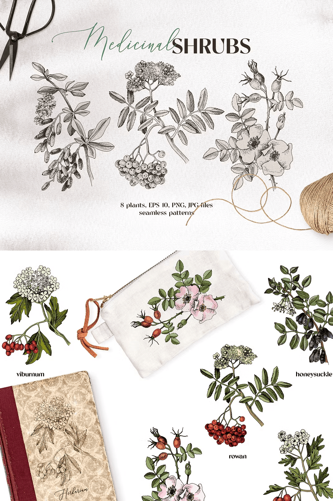 – **8 Botanical Illustrations (Color & Monochrome)**: Detailed depictions of viburnum, rosehip, honeysuckle, buckthorn, rowan, elderberry, barberry, and hawthorn, ideal for posters, infographics, and book covers.