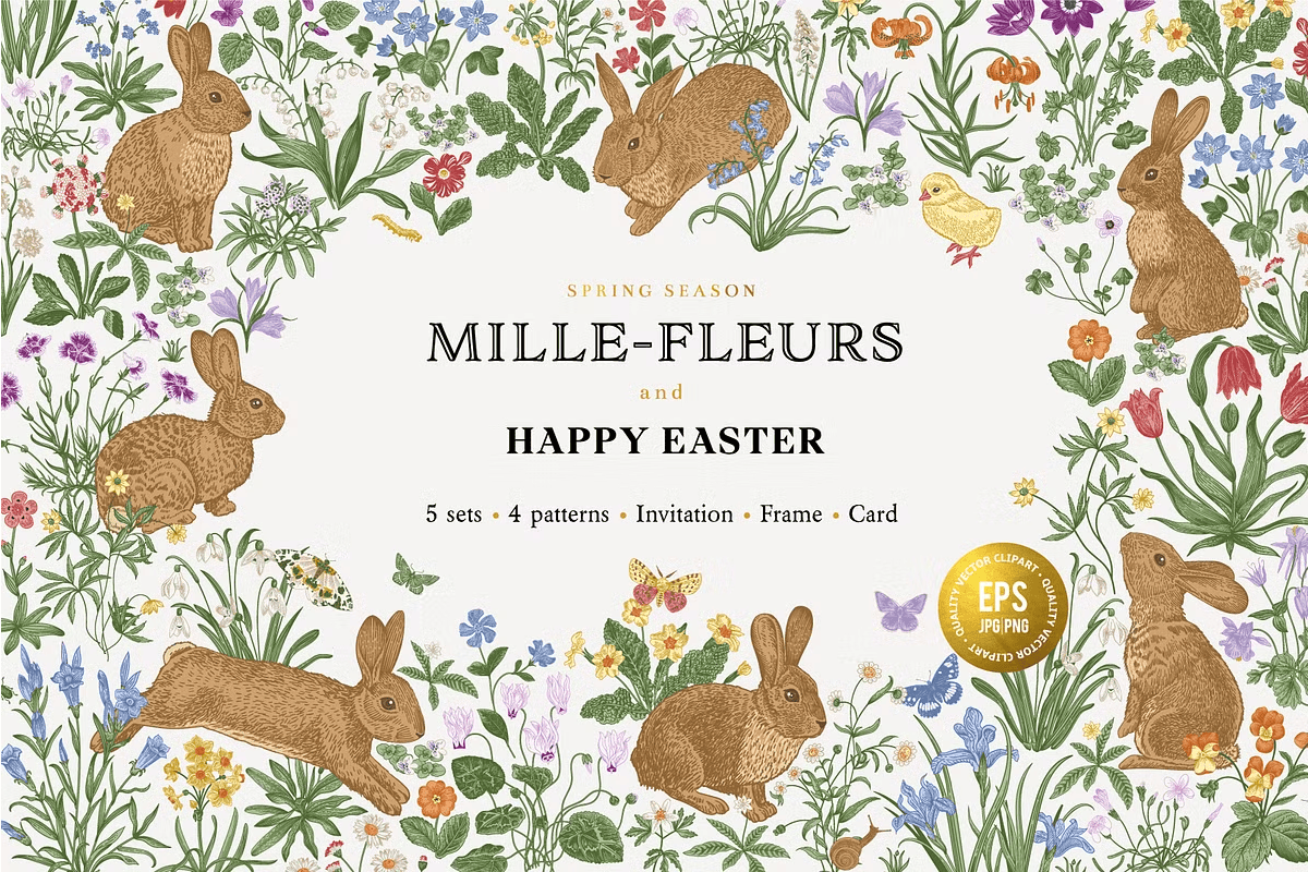 Download the Mille-fleurs Happy Easter collection today and make every design a celebration.