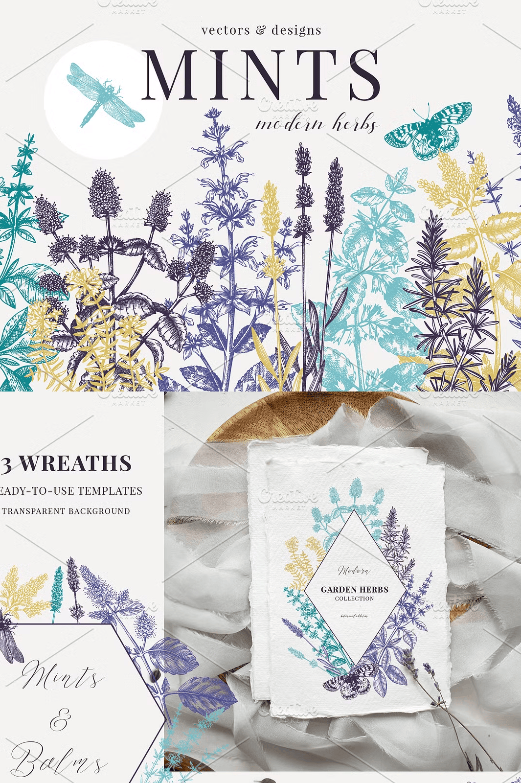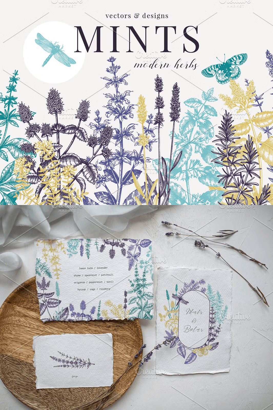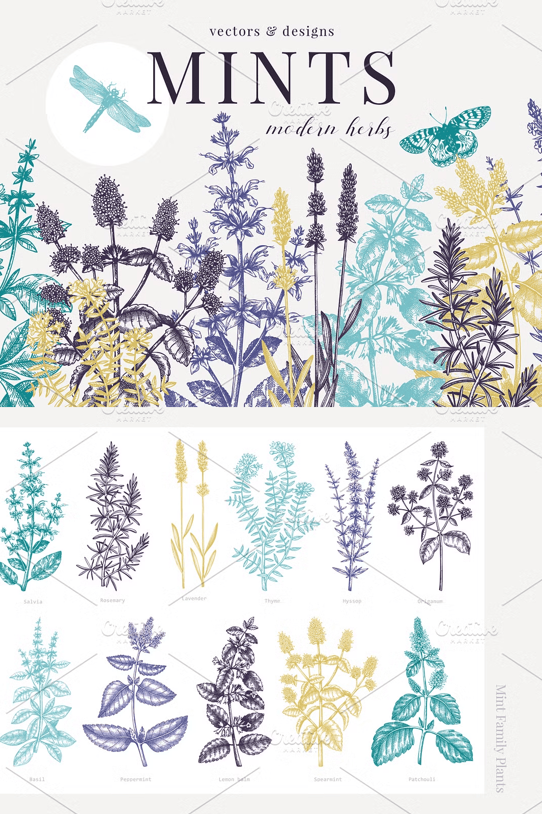 Unleash the elegance of nature with the *Mints Modern Herbs Collection*—a thoughtfully curated hand-drawn botanical bundle that captures the fresh, modern essence of the mint family. This dynamic collection brings together 11 popular herbs: peppermint, lemon balm, lavender, hyssop, sage, rosemary, thyme, basil, spearmint, patchouli, and origanum—each rendered with artistic precision and inspired by the vibrant palettes of 2021. Every illustration is meticulously crafted to deliver both aesthetic beauty and functional versatility for designers, artists, and entrepreneurs.