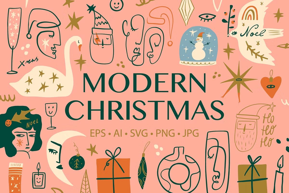 Elevate your holiday projects with this exclusive Modern Christmas Bundle featuring a collection of handcrafted doodle characters. Designed in a boho Scandinavian minimalist style, this bundle combines contemporary and artistic elements to inspire your creativity. Whether you want to mix elements or use pre-made illustrations and patterns, this set offers endless possibilities for your seasonal designs.