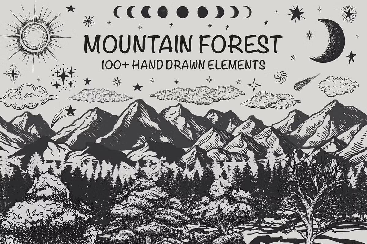 Get Your Mountain Forest Hand-Drawn Elements Today