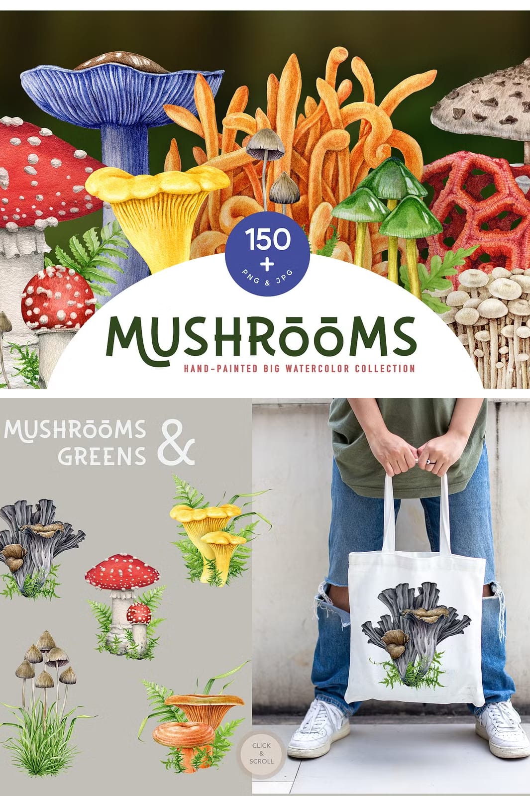Get immediate access to this unique, hand-painted mushroom artwork collection. Click the centered download button below to start enhancing your creative work with nature-inspired, high-resolution watercolor designs.