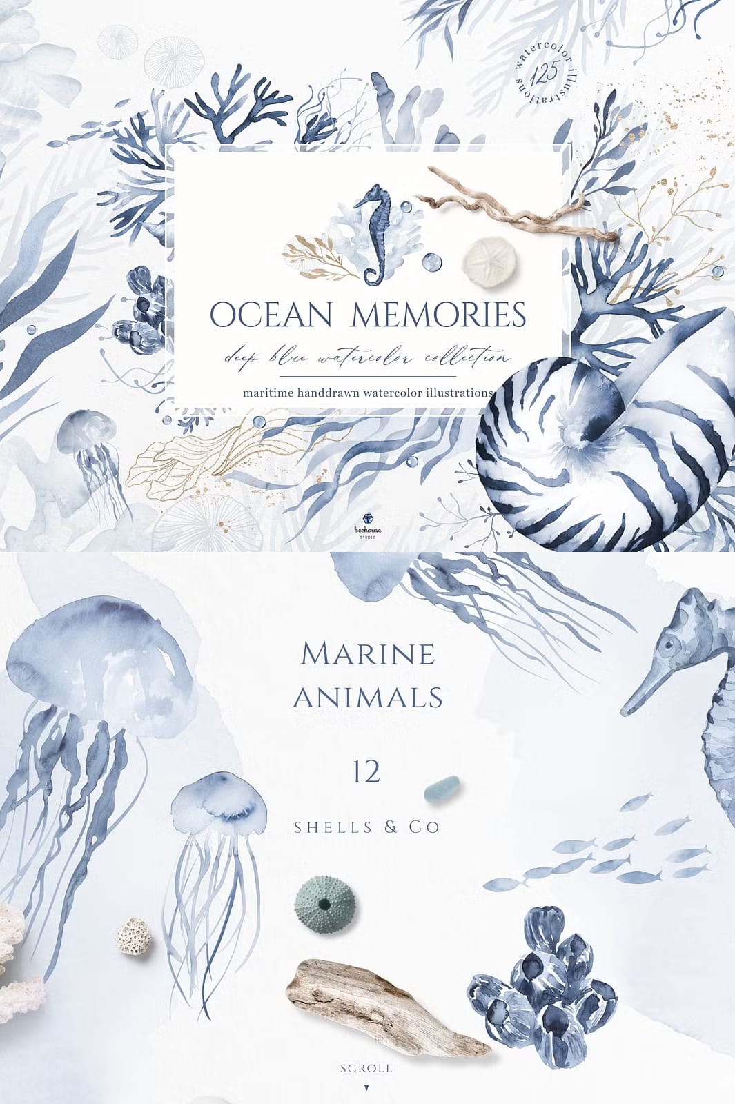 Introducing an exquisite collection of 125 high-quality hand-drawn illustrations that capture the delicate beauty of corals, marine animals, and seaweeds. This set is designed to evoke dreamy summer feelings in your creative projects. Each illustration is meticulously crafted to showcase intricate details that bring life to any design.