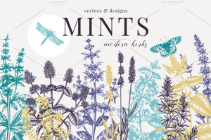 Mints. Modern Herbs Sketches