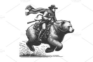 Wild West Cowboy Riding Bear Vector
