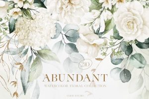 Watercolor White Floral Alphabet Set