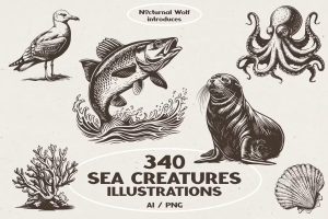 340 Sea Creatures Illustrations