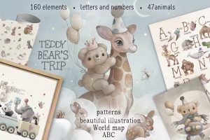 Animal ABC World Map Watercolor Set
