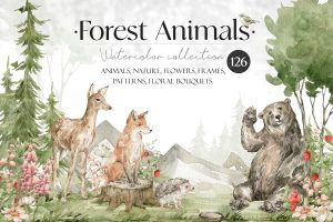 Forest Animals. Watercolor Wildlife