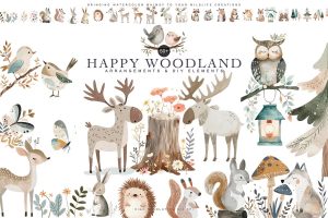 Watercolor Woodland Animal Clipart