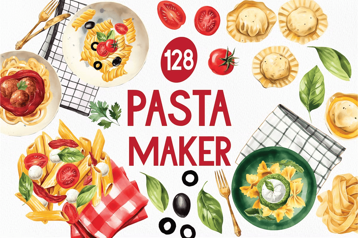 Don’t wait to bring the warmth and artistry of Italian cuisine into your next digital masterpiece. Let your creativity simmer—then serve it up with the Watercolor Pasta Clipart Collection.