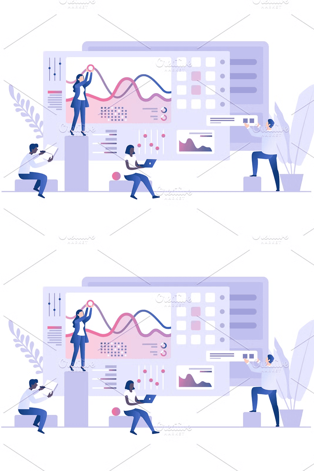 This illustration goes beyond generic stock imagery. It tells a story of teamwork, insight, and the intellectual power behind data. It represents the core of modern business: turning raw numbers into actionable strategies through collaboration and analytical rigor.