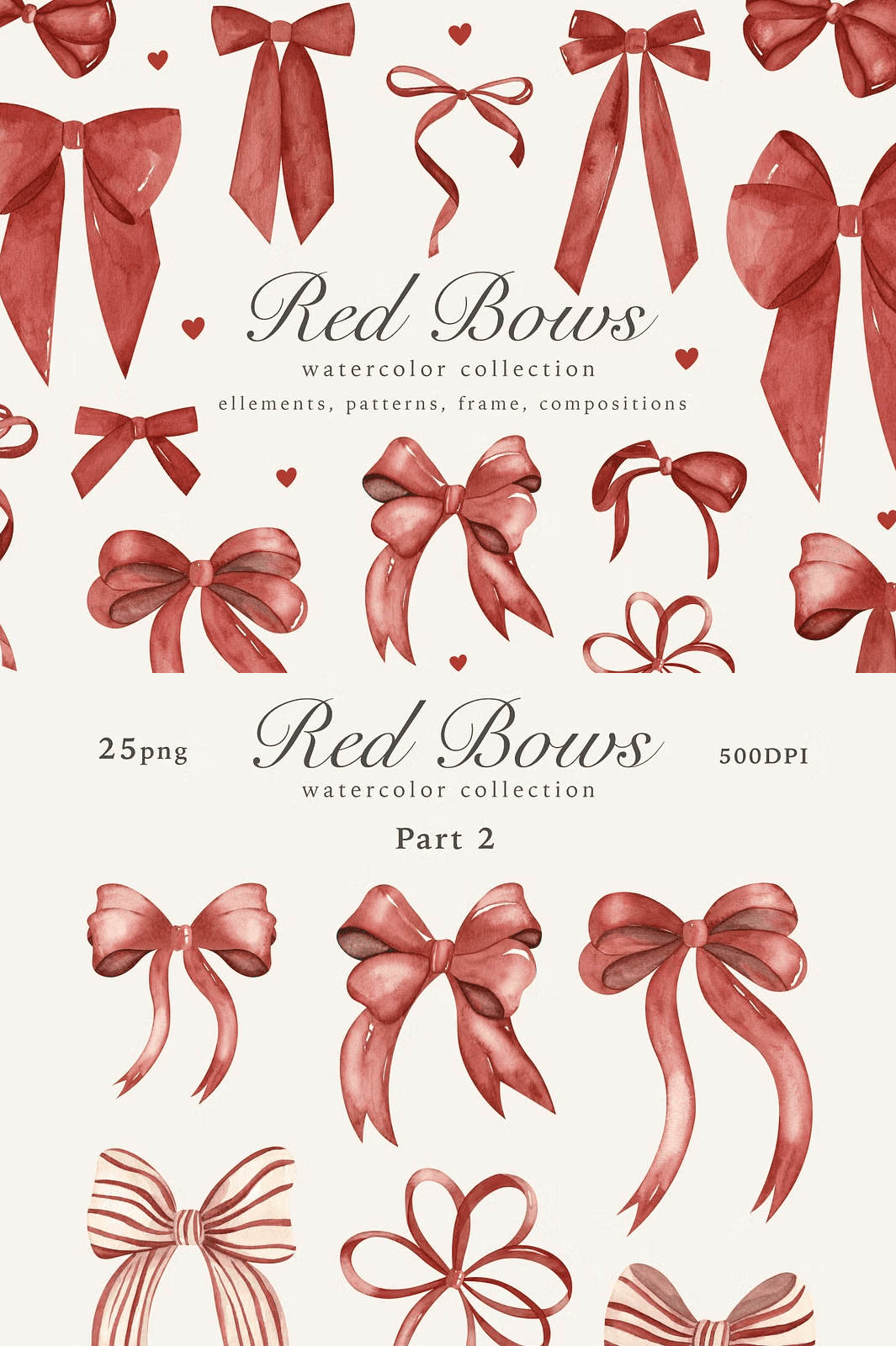 - 25 unique individual bows — perfect for standalone accents in invitations, logos, or social media posts.