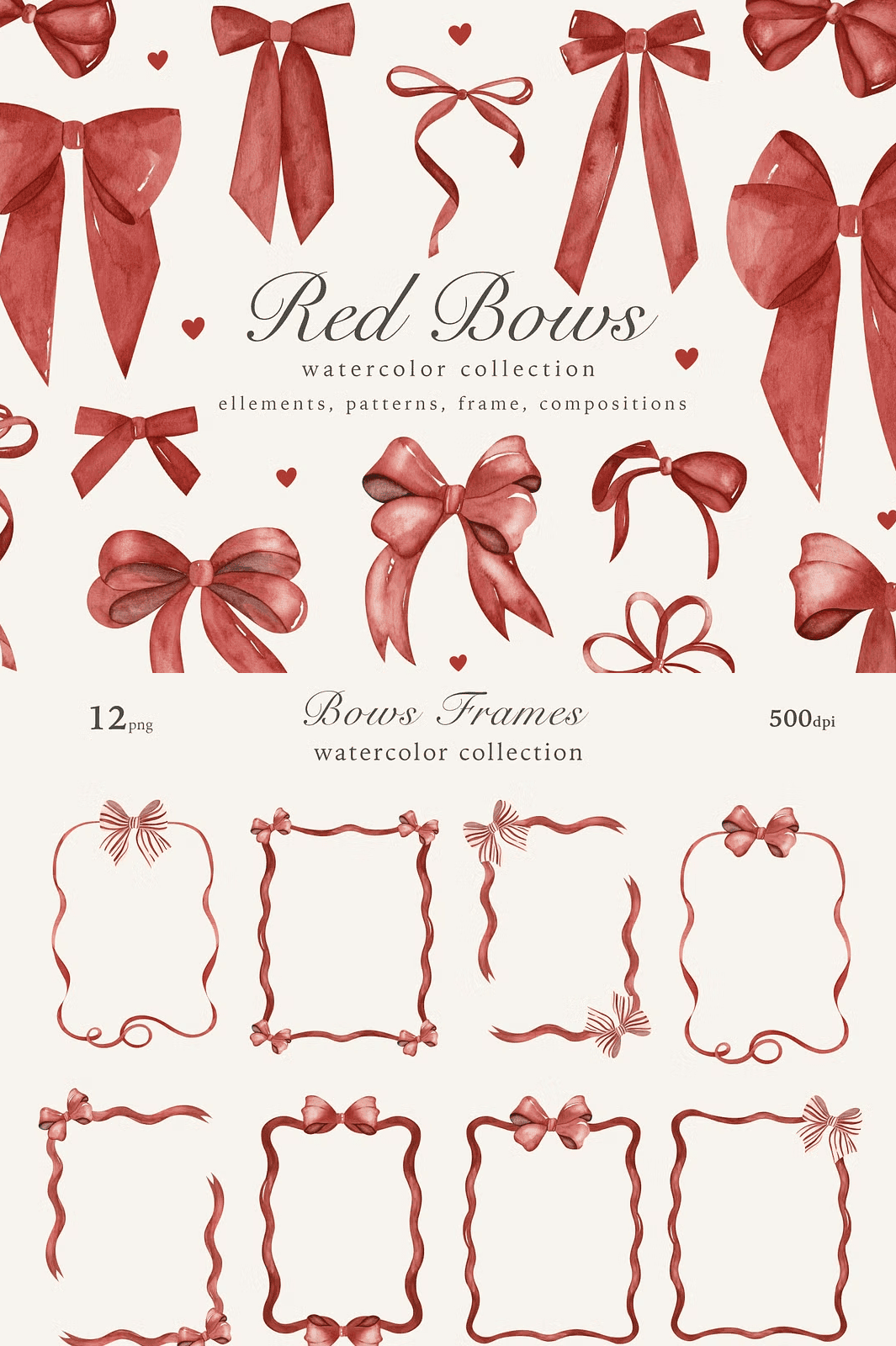 - 12 bow frame designs — ideal for borders, thumbnails, or decorative sections in digital layouts.