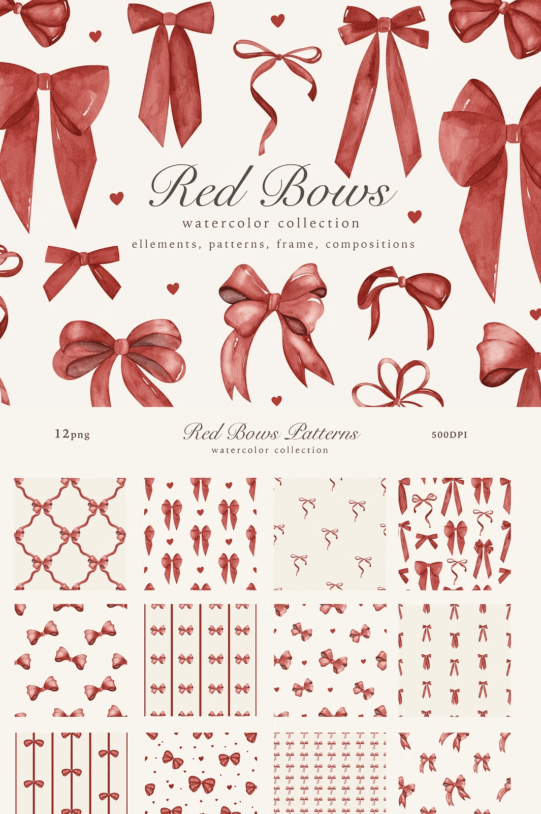 - 12 bow pattern repeats — seamlessly tileable patterns perfect for fabric, wallpaper, wrapping paper, and textile design.
